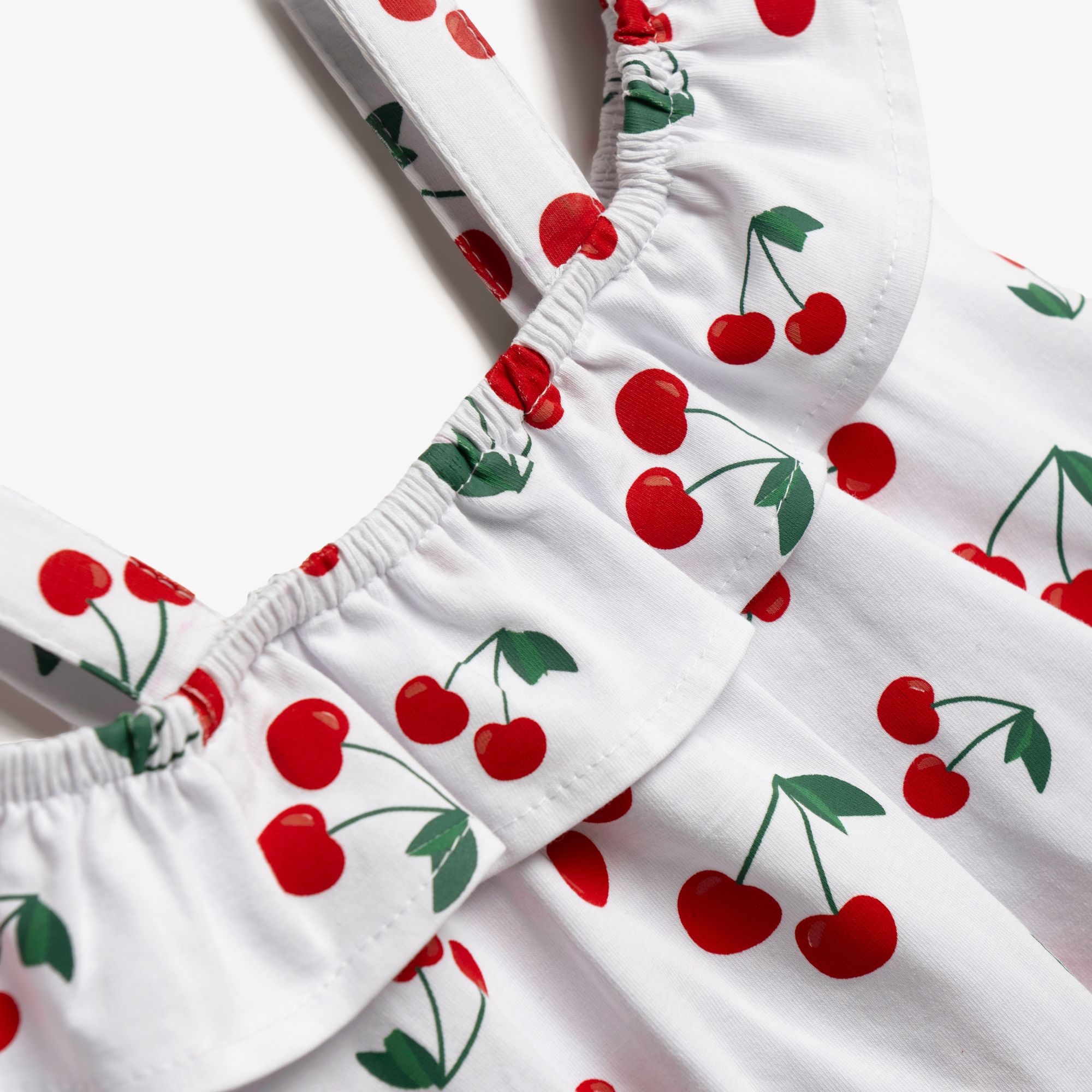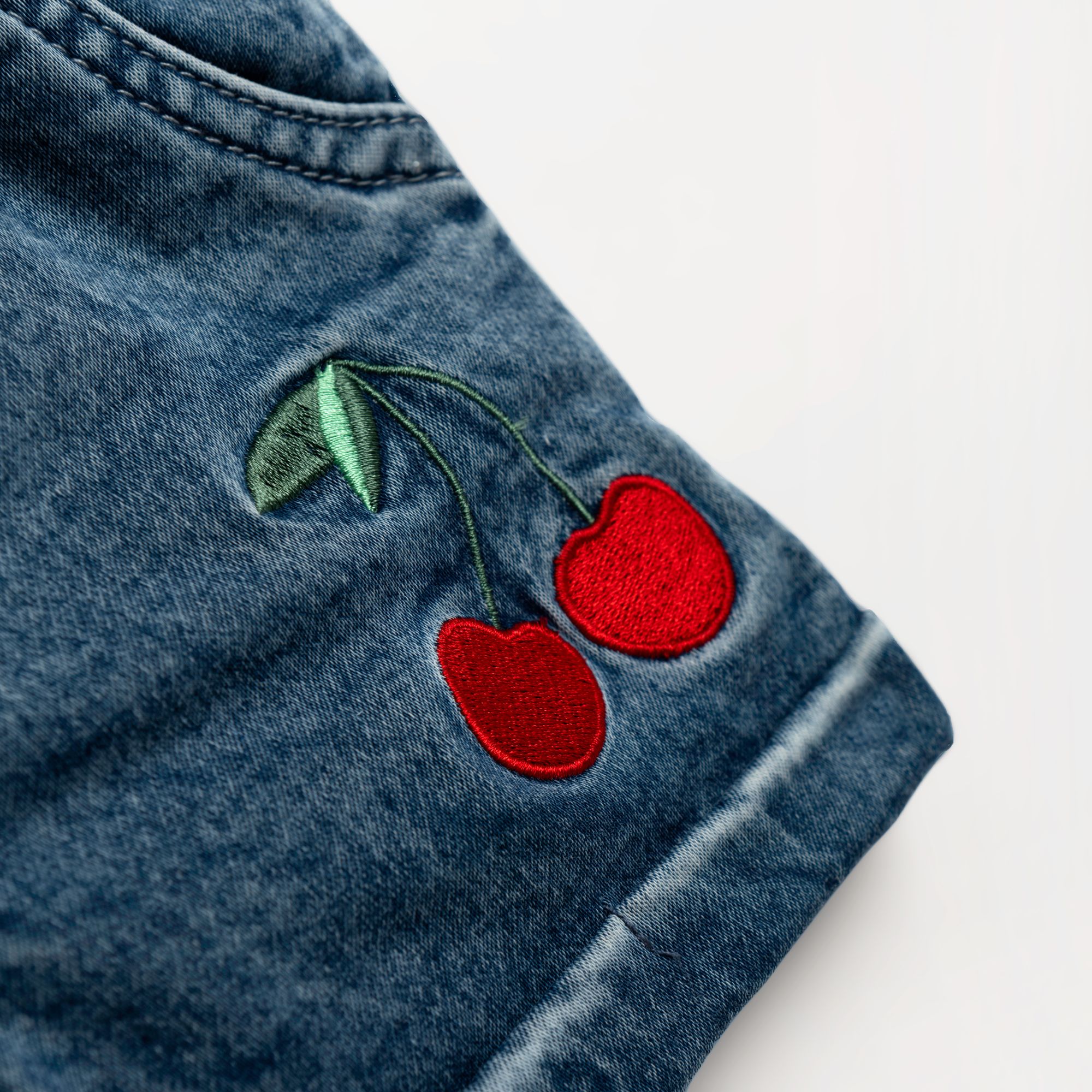 Set blouse jersey lycra with printing (cherries) allover and shorts jean lycra in color white/blue jean for girls 1-6 years
