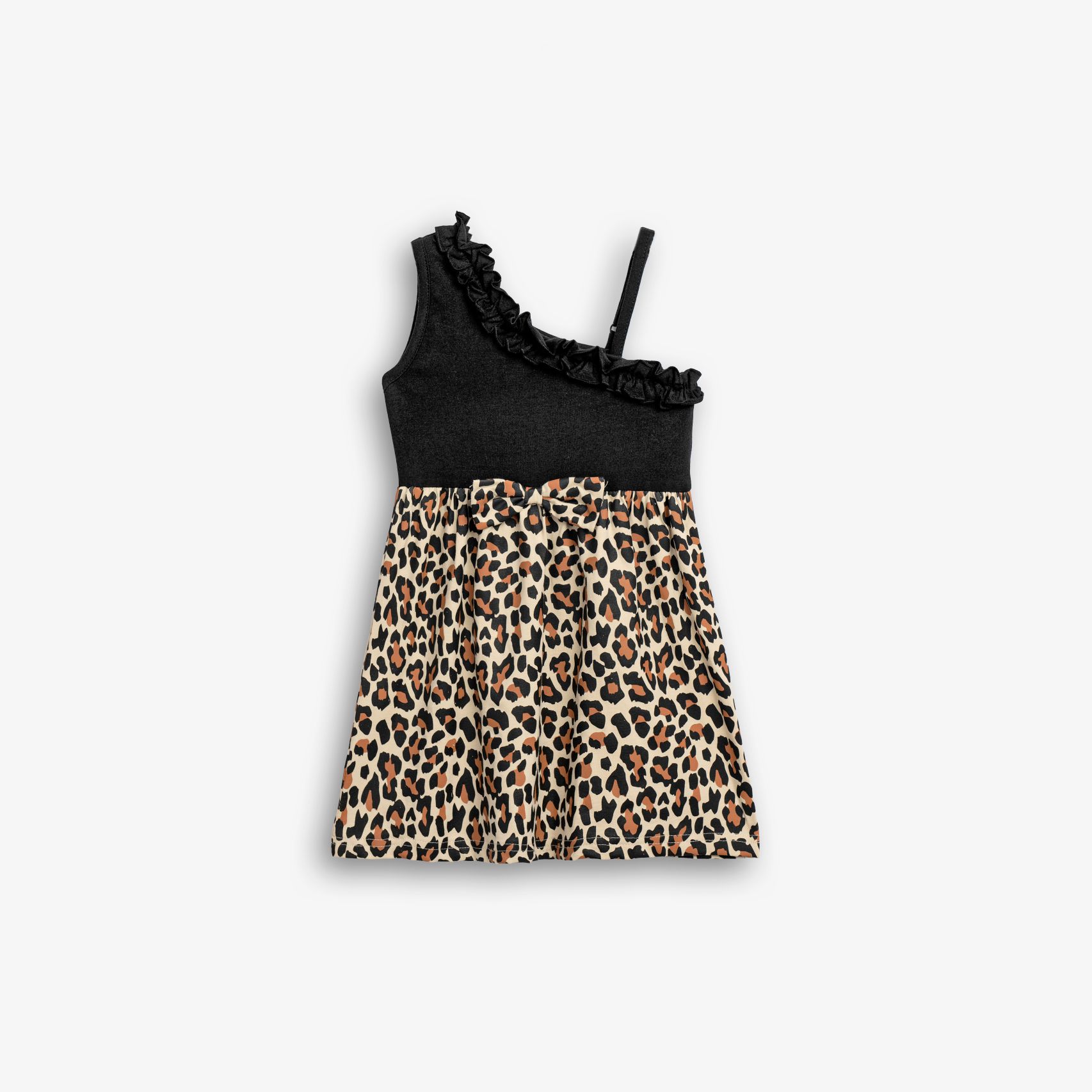 Dress jersey lycra with printing (leopar) allover in color black-light beige for girls 1-6 years