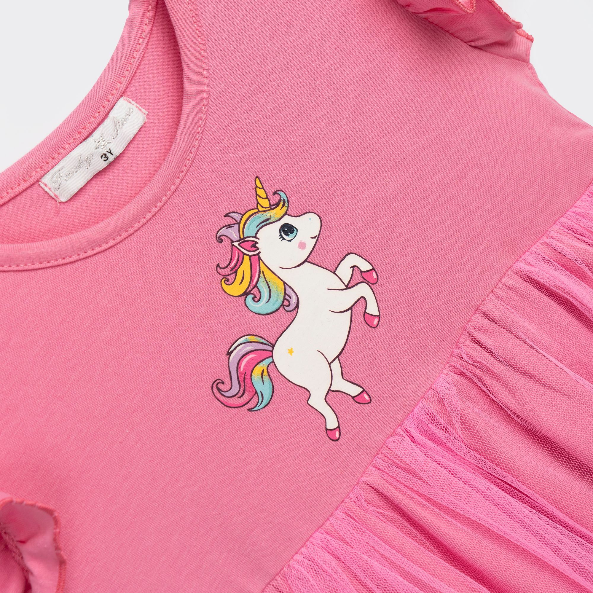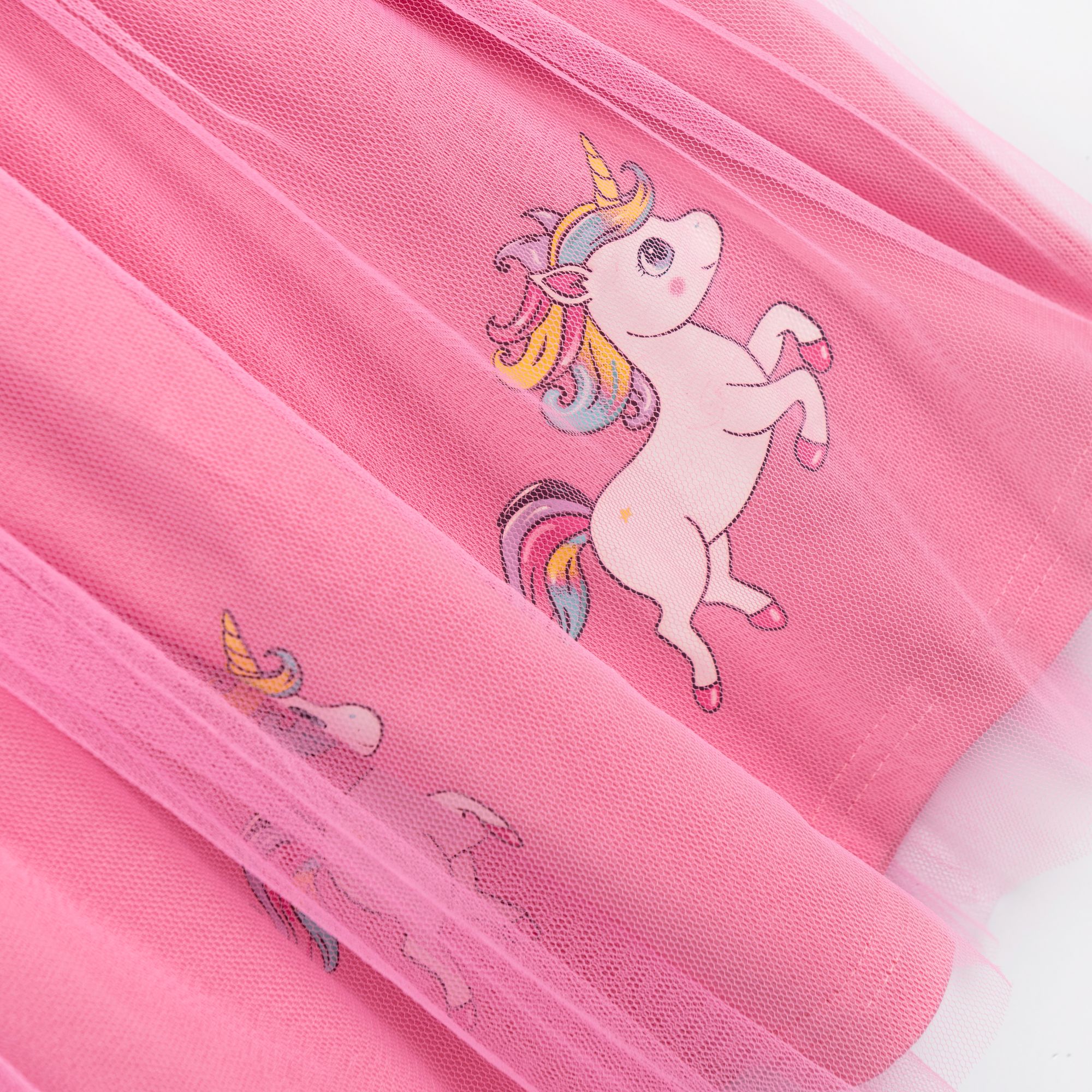 Dress jersey lycra with printing (unicorn) and tulle in color candy pink for girls 1-6 years