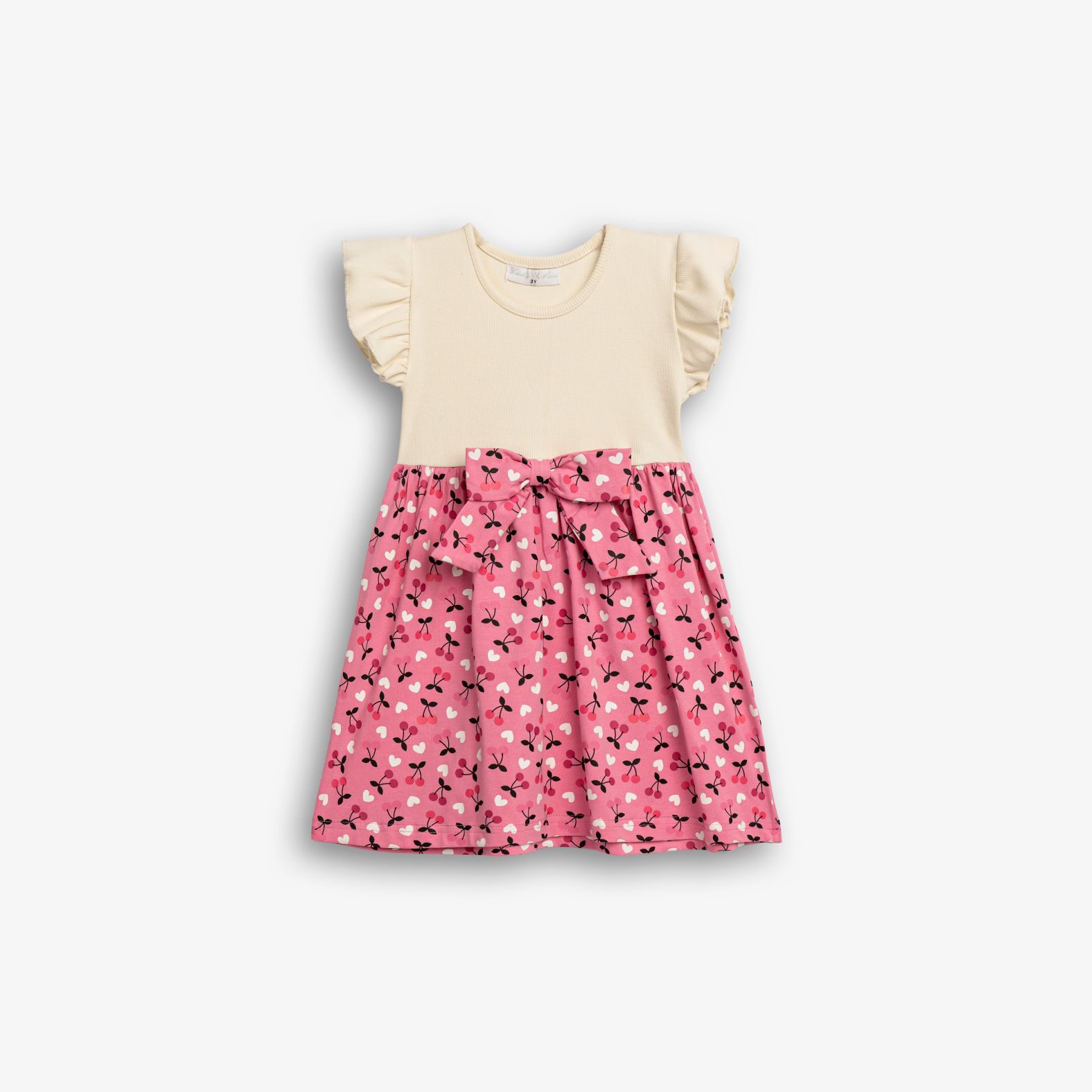 Dress jersey lycra and rip with printing (cherries) allover in color ecru-candy pink for girls 1-6 years