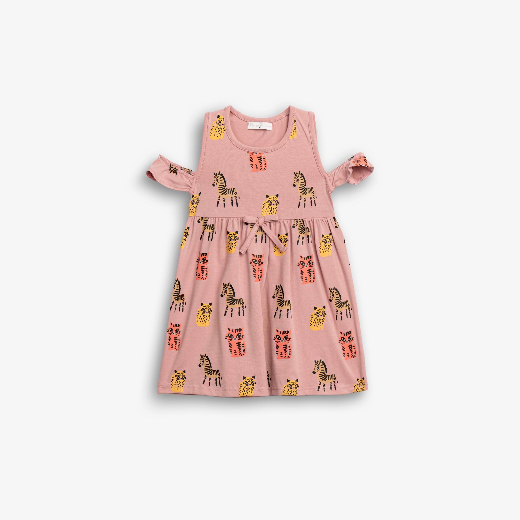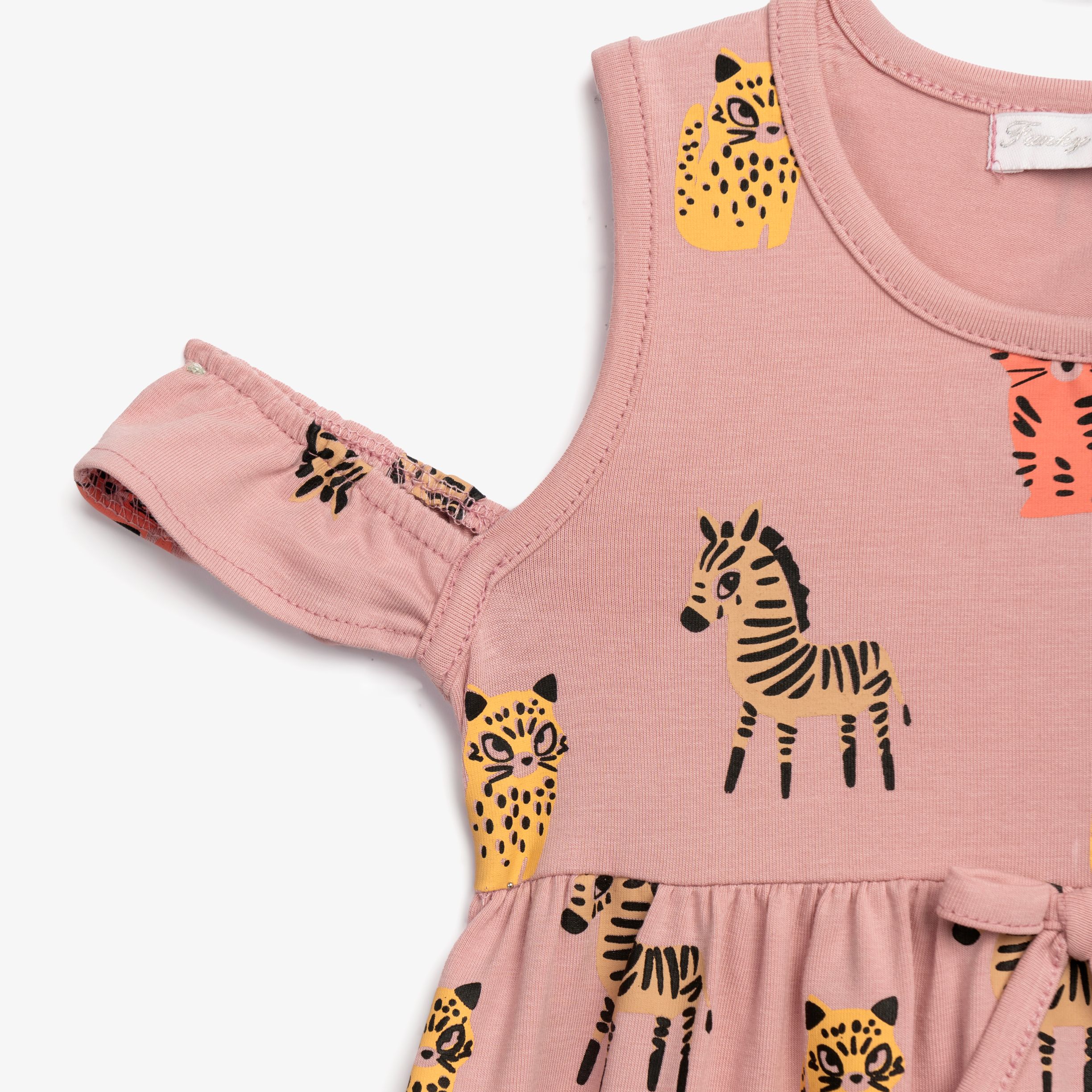 Dress jersey lycra with printing (animals) allover in color wild rose for girls 1-6 years