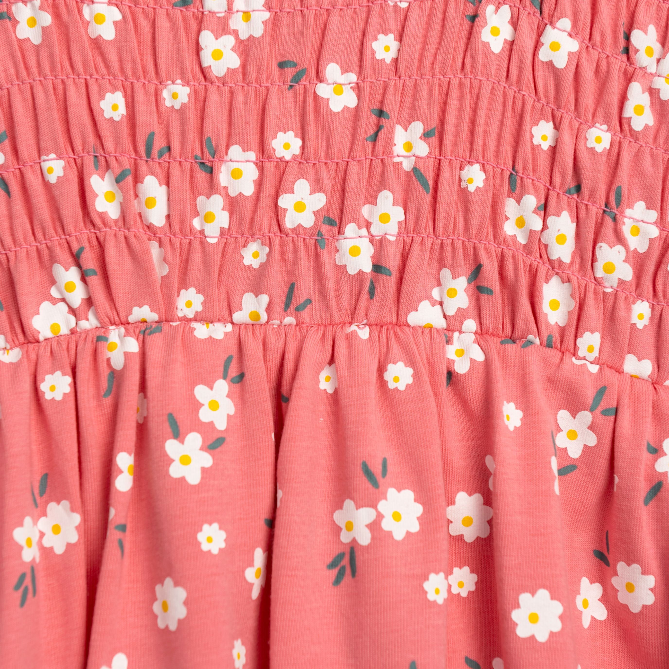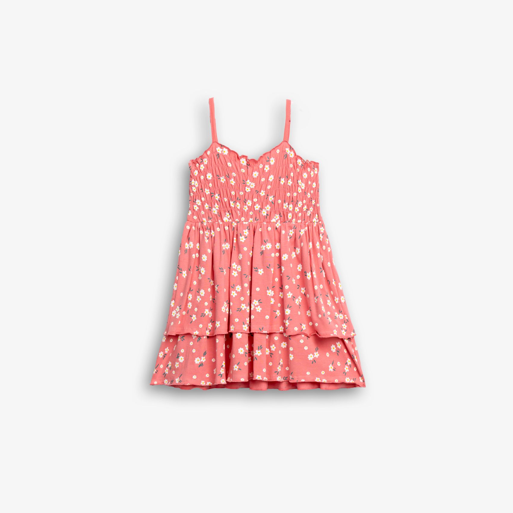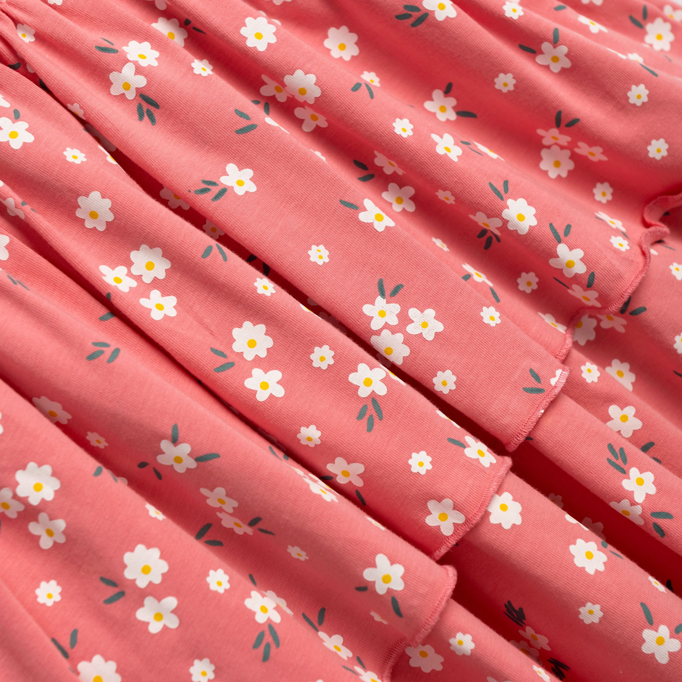Dress jersey lycra with printing (flower) allover in color crayon rouge for girls 1-6 years