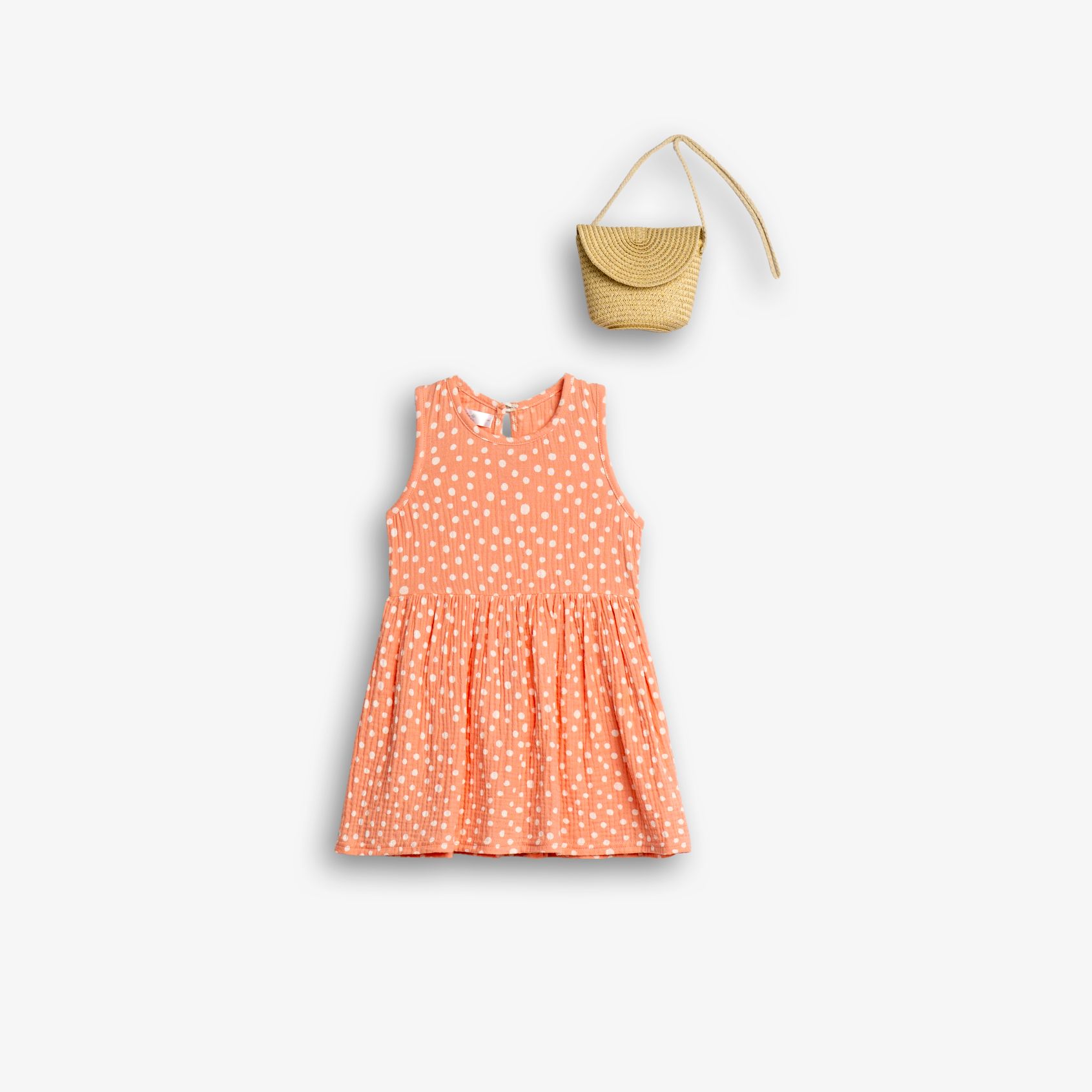 Dress with polka dots in color pink powder for girls 1-6 years