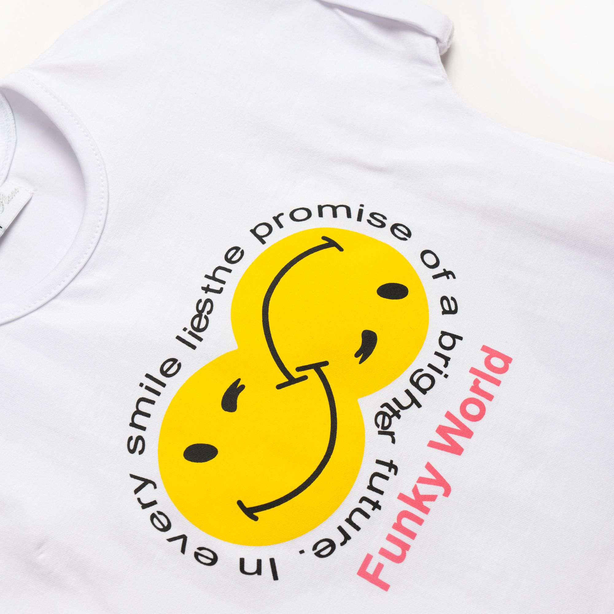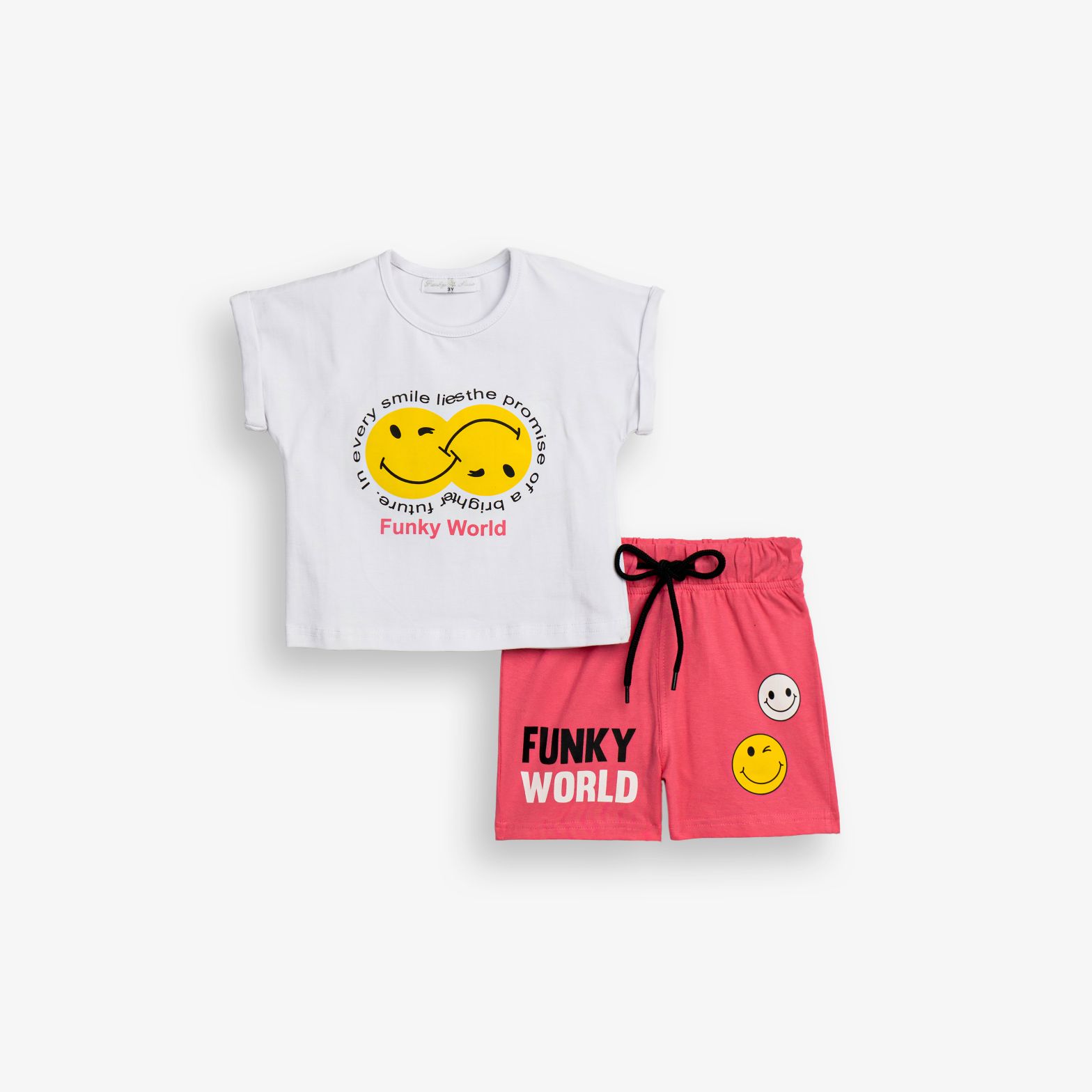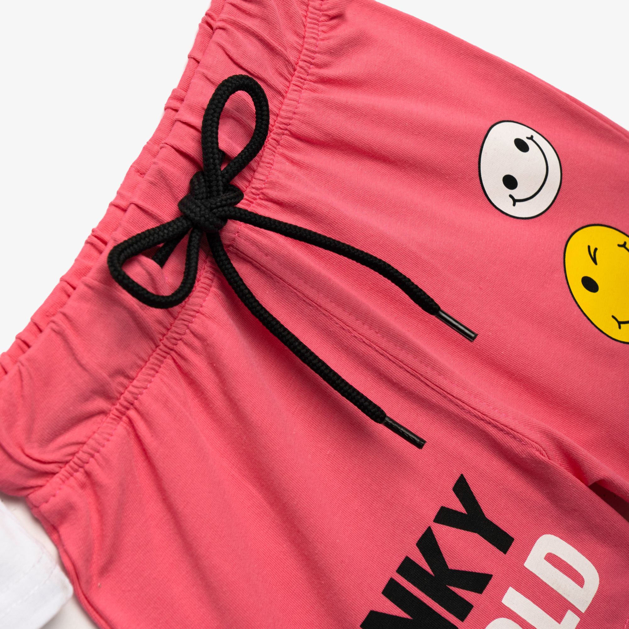 Set blouse jersey lycra with printing (faces) and corduroy with printing in color white/flamingo for girls 1-6 years
