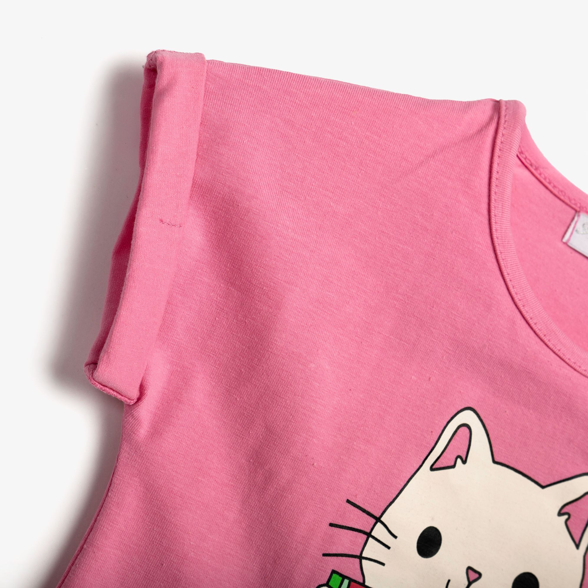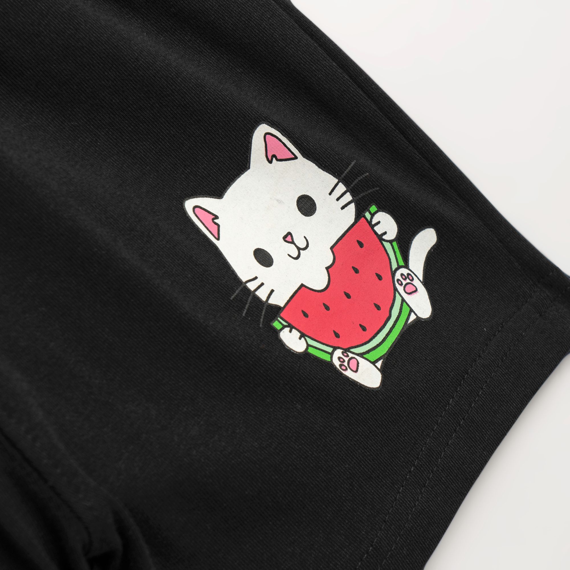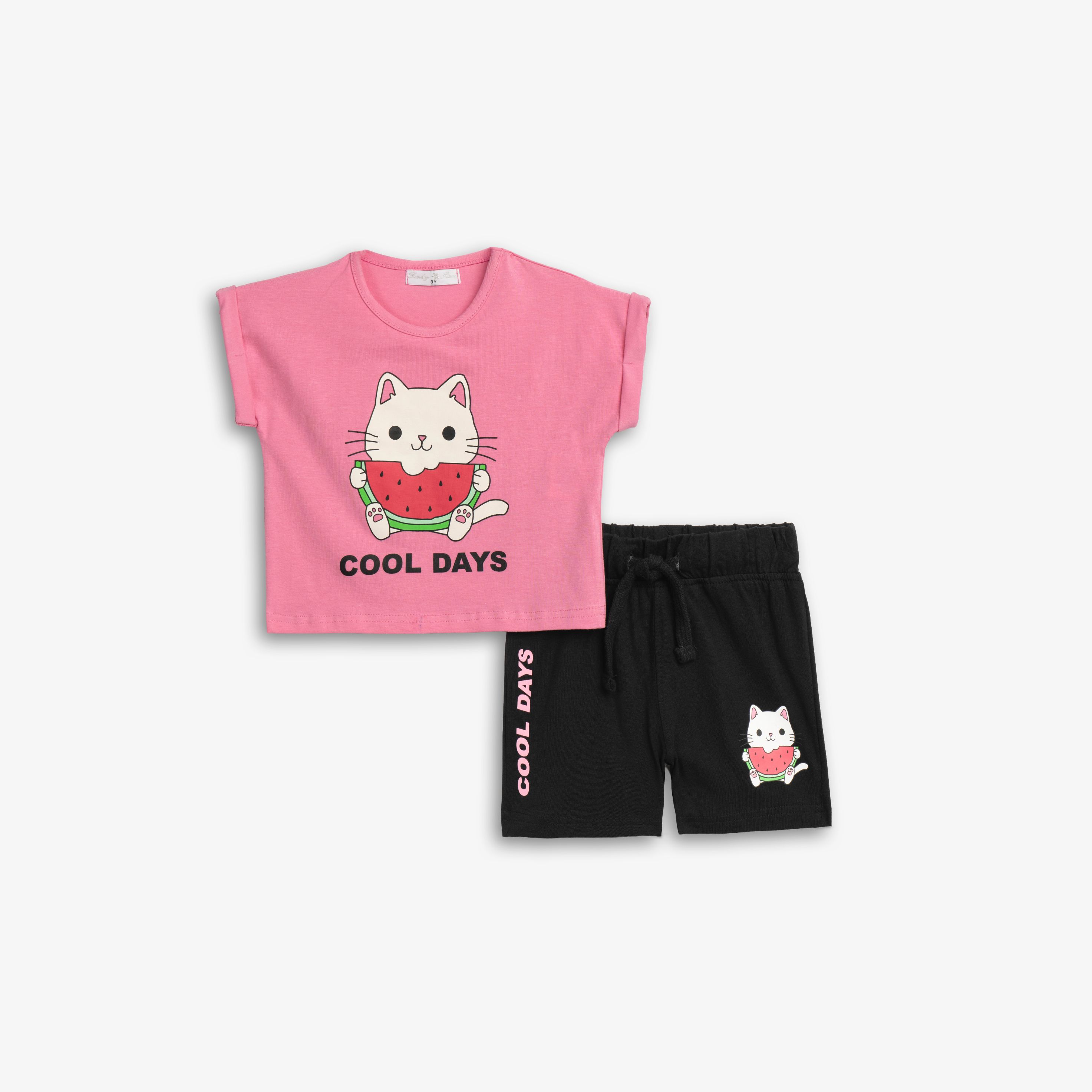 Set blouse jersey lycra with printing (cat) and corduroy with printing in color candy pink/black for girls 1-6 years