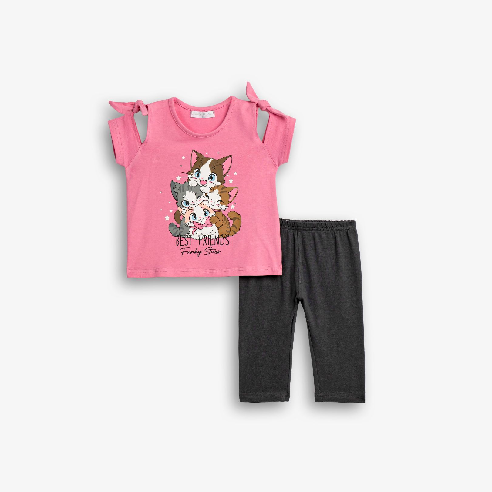 Set blouse with printing (cats) and leggings capri jersey in color candy pink/black for girls 1-6 years