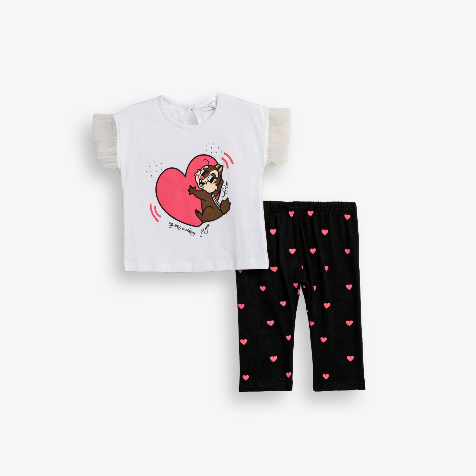 Set blouse with printing (squirrel) and leggings capri jersey with printing allover in color white/black for girls 1-6 years