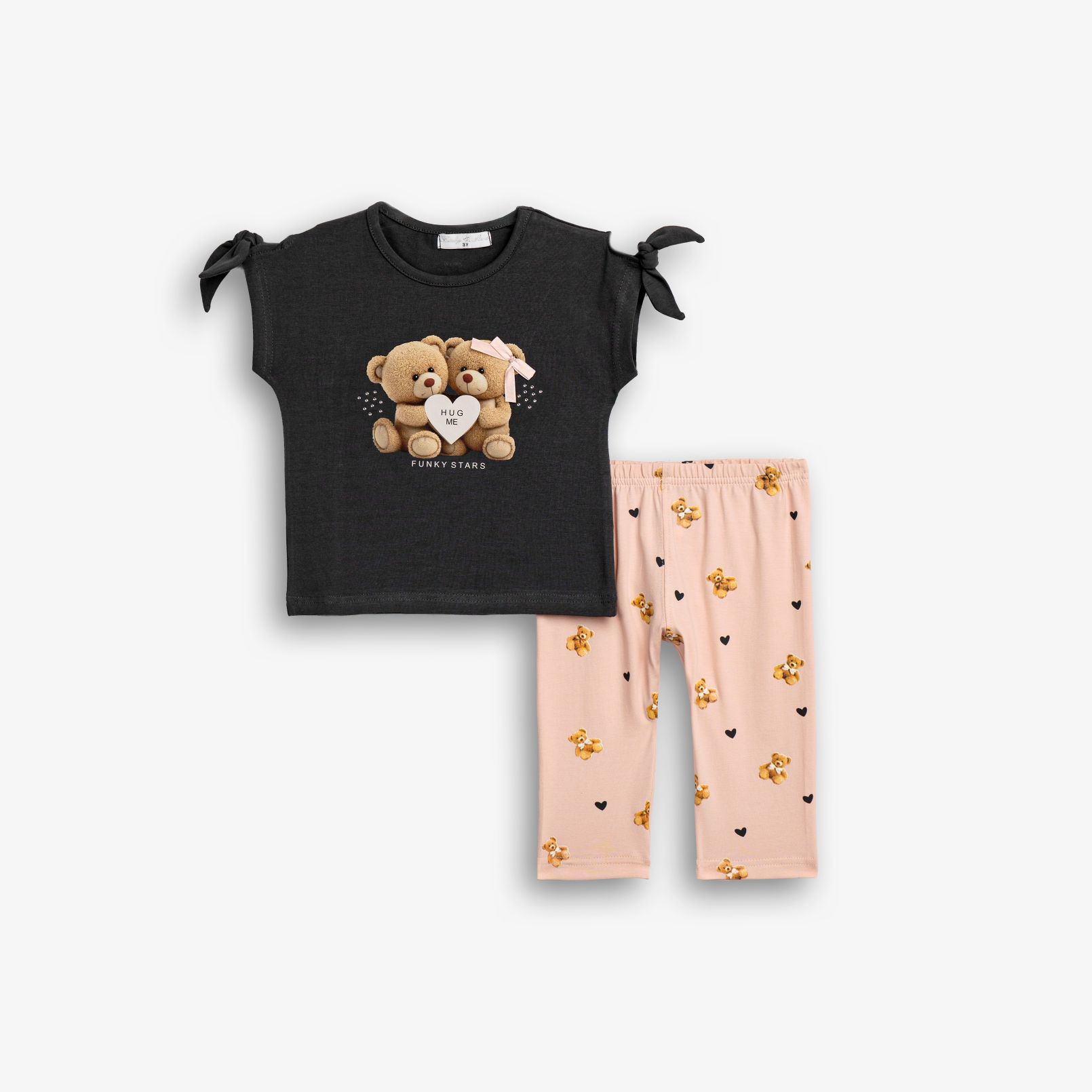 Set blouse with printing (tedyy bears) and leggings capri jersey with printing allover in color anthracite/pink powder for girls 1-6 years