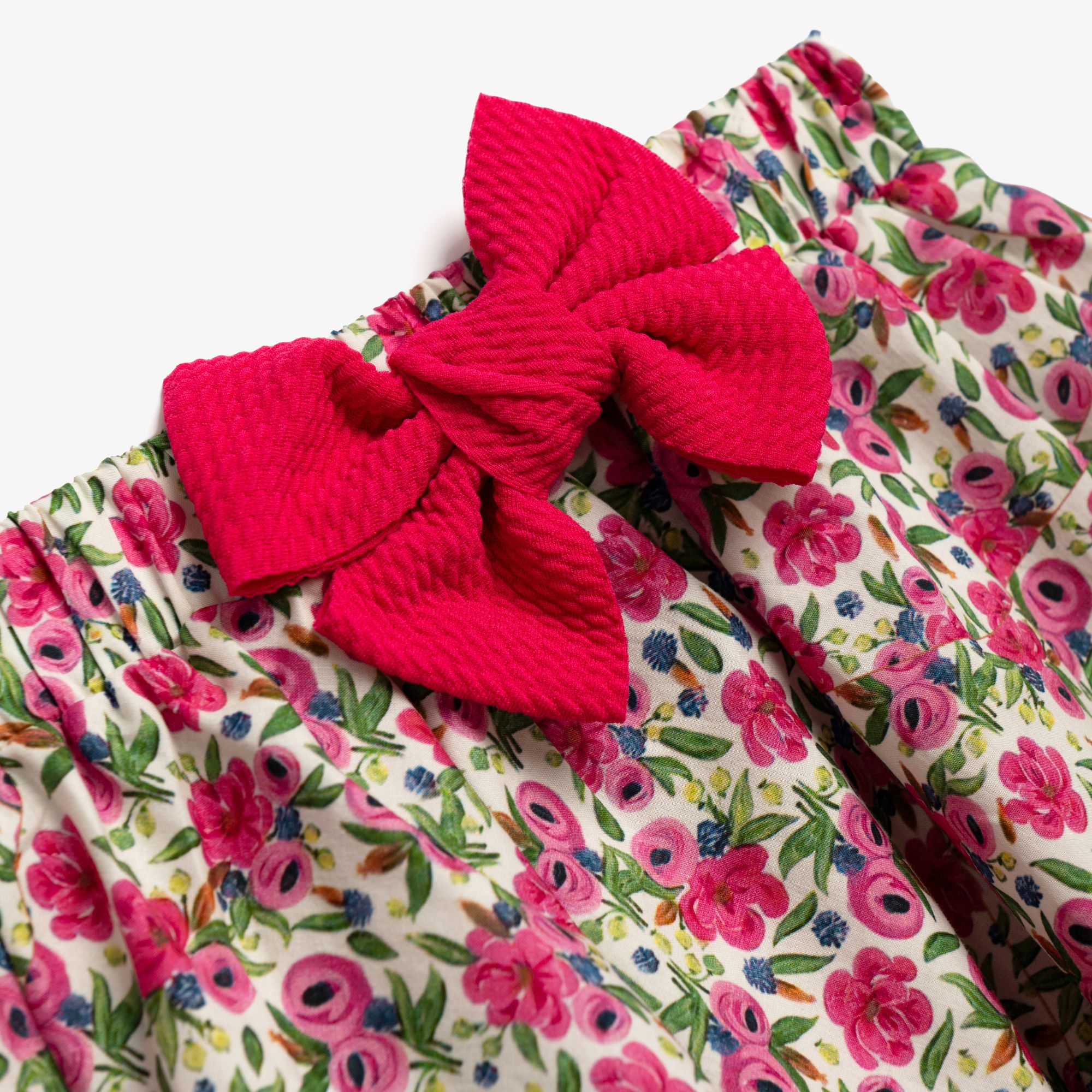 Set blouse with printing (flowers) allover and skirt with printing allover and hat in color type for girls 1-6 years