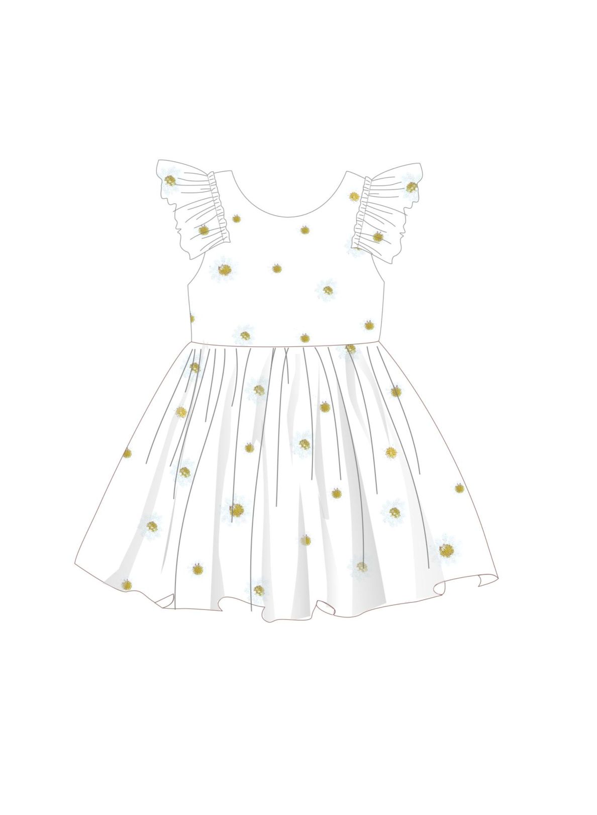 Dress with tulle in color white for girls 1-6 years