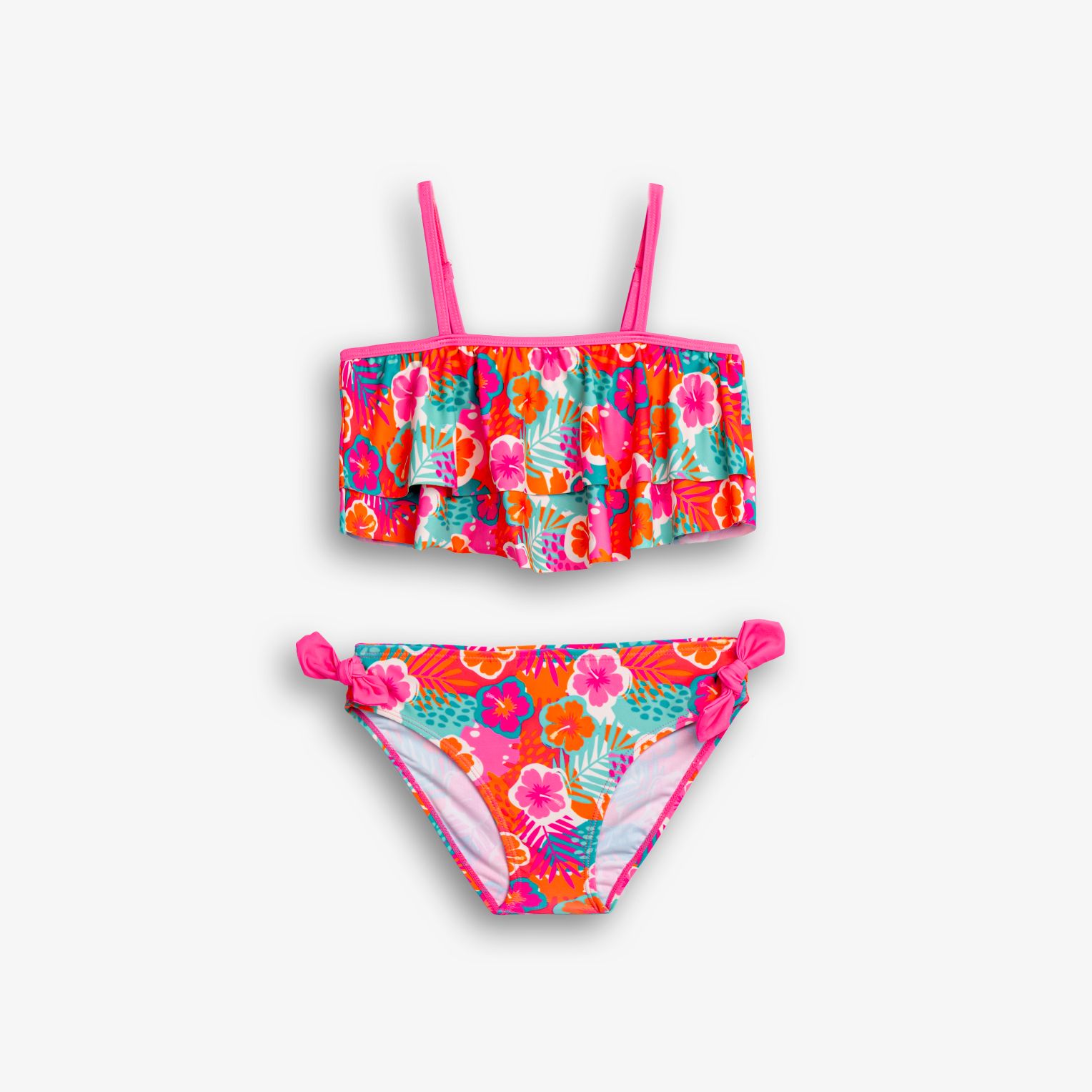 Μαγιό μπικίνι με τύπωμα (λουλούδια) allover σε χρώμα φωσφορούχο ροζ για κορίτσι 6-16 ετών