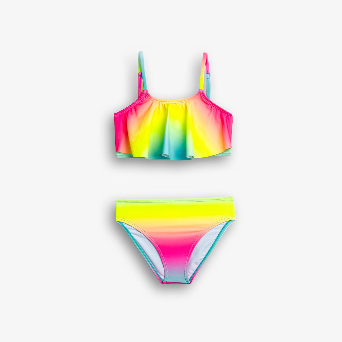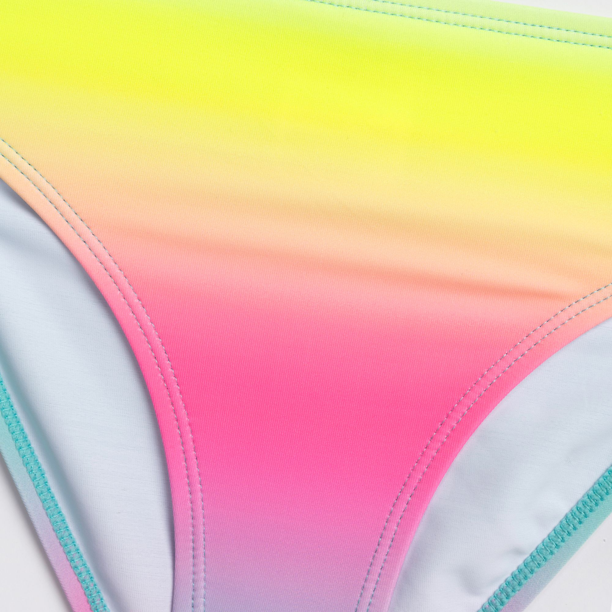 Μαγιό μπικίνι σε χρώμα ντεγκραντέ τυρκουάζ-φωσφωρούχο ρόζ-φωσφορούχο κίτρινο-βεραμάν για κορίτσι 6-16 ετών