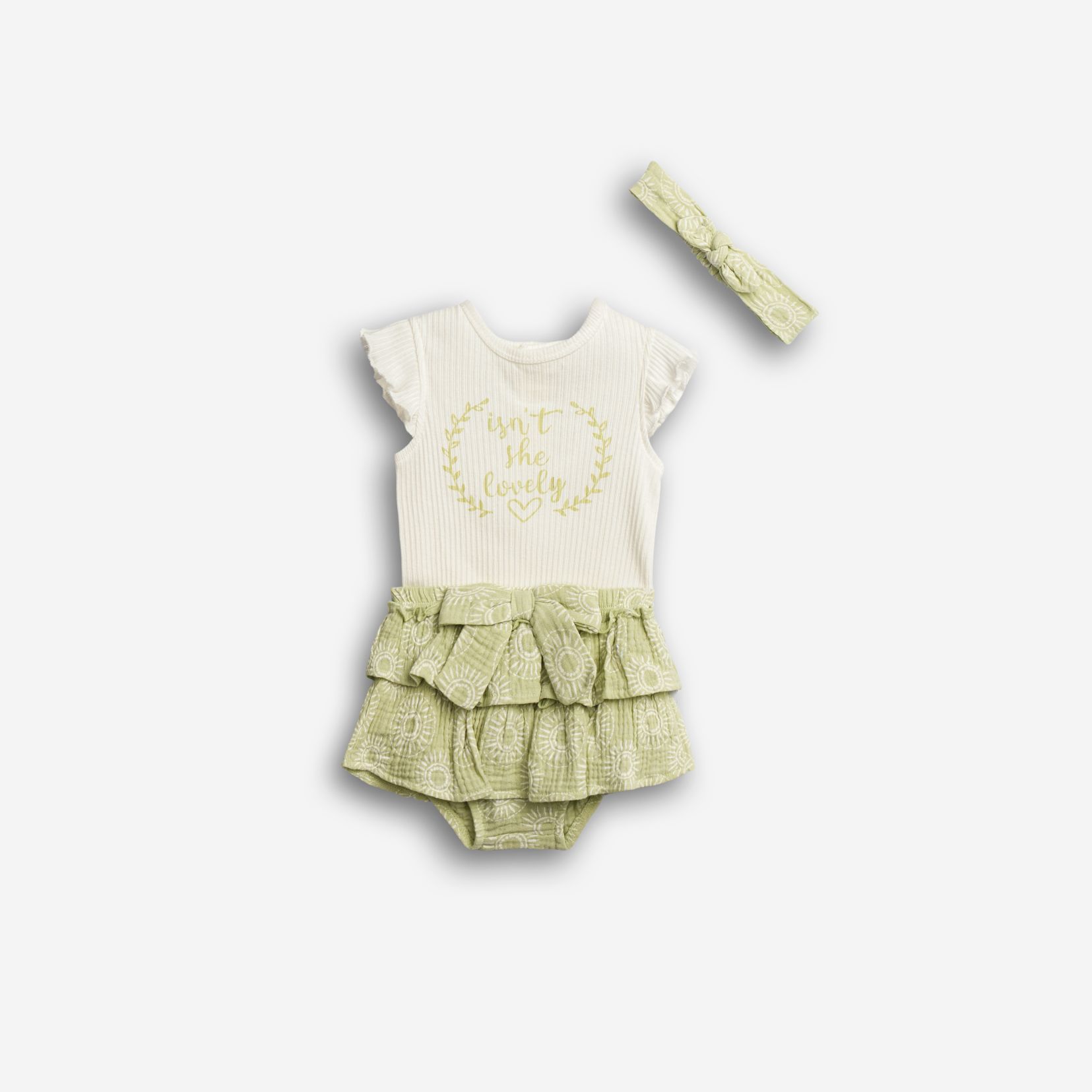 Σετ κορμάκι ριπ και σόρτς και κορδέλα σε χρώμα λευκό/τύπος για κορίτσι βρεφανάπτυξη