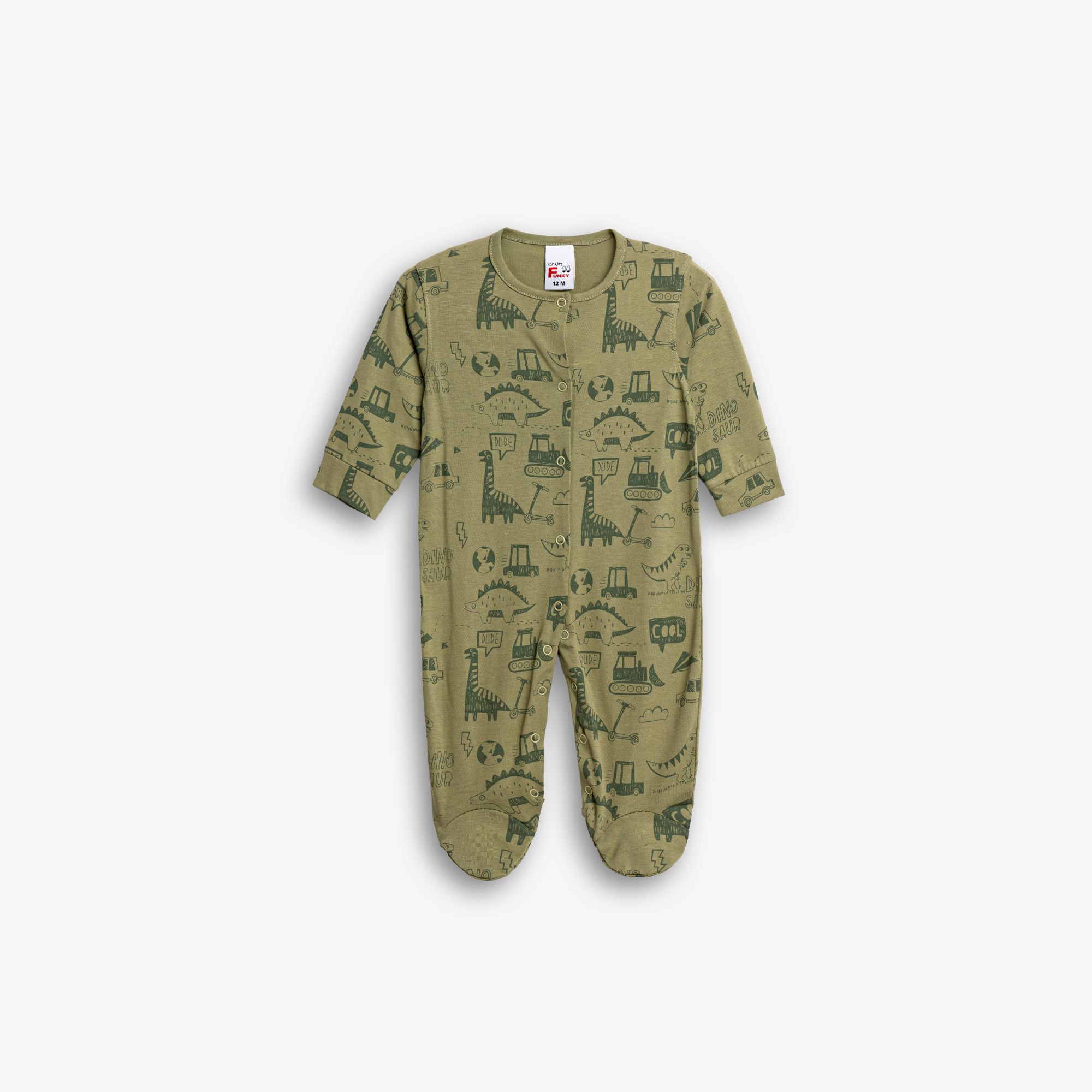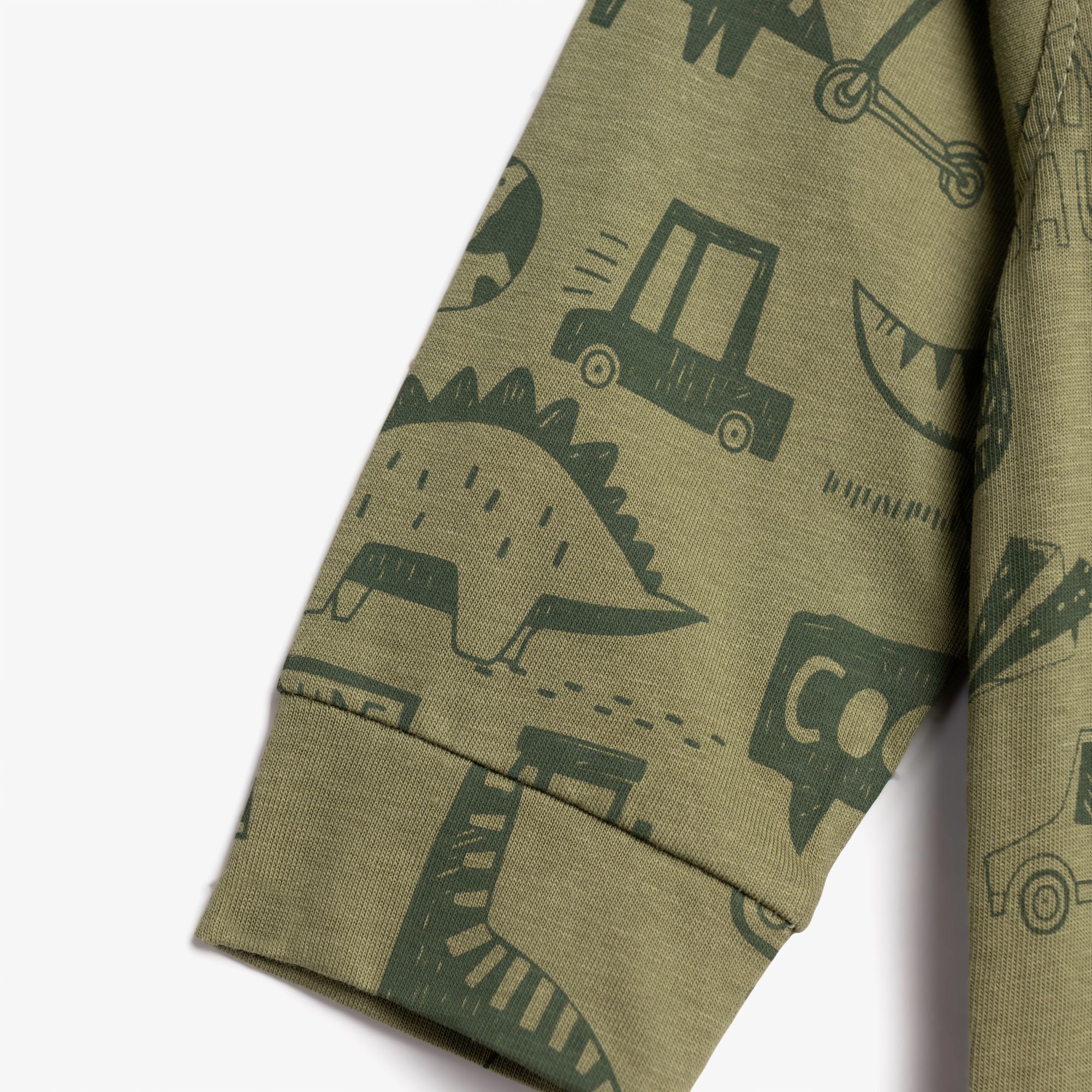 Φορμάκι μακρυμάνικο κάλτσα με τύπωμα (διάφορα σχέδια) allover σε χρώμα χακί για αγόρι βρεφανάπτυξη
