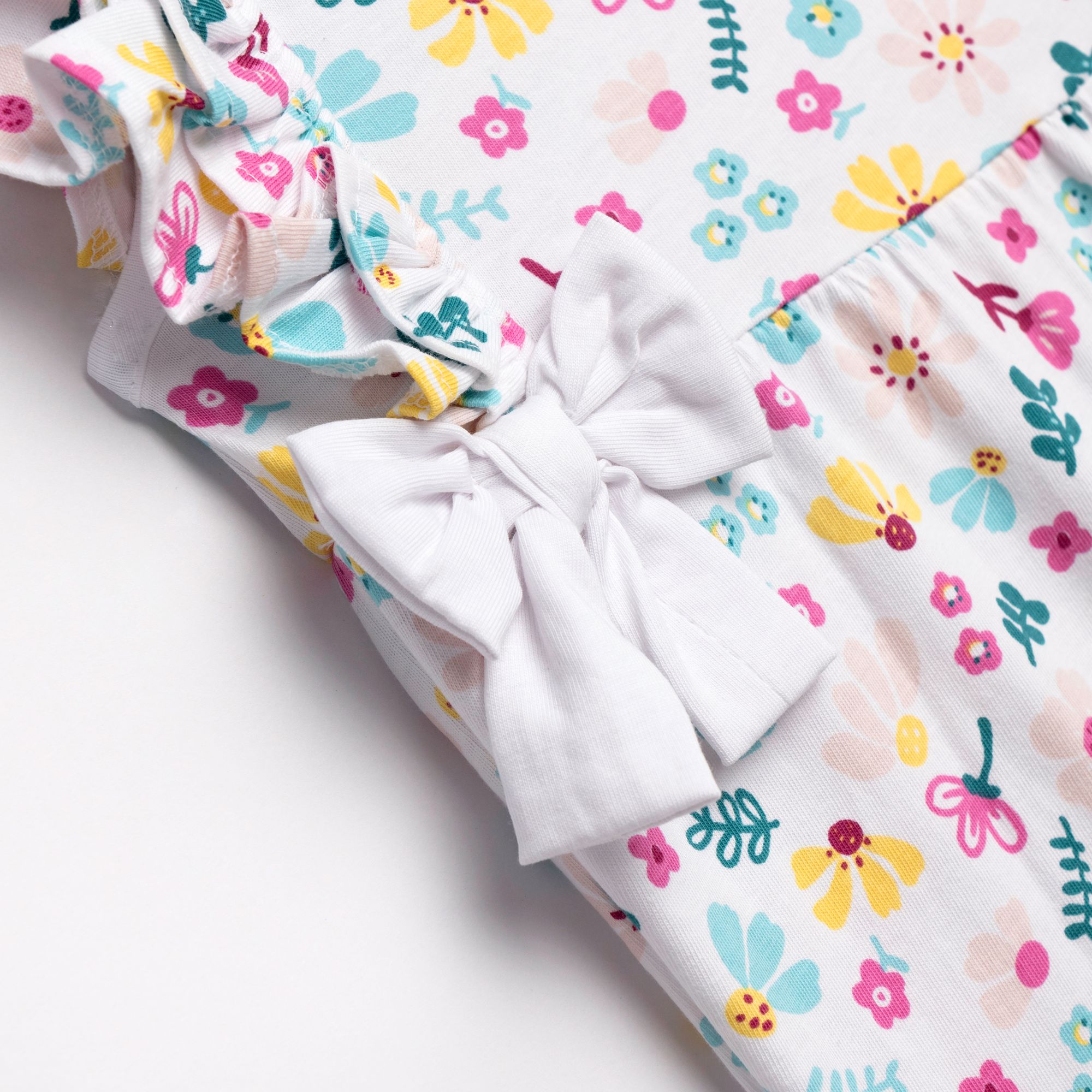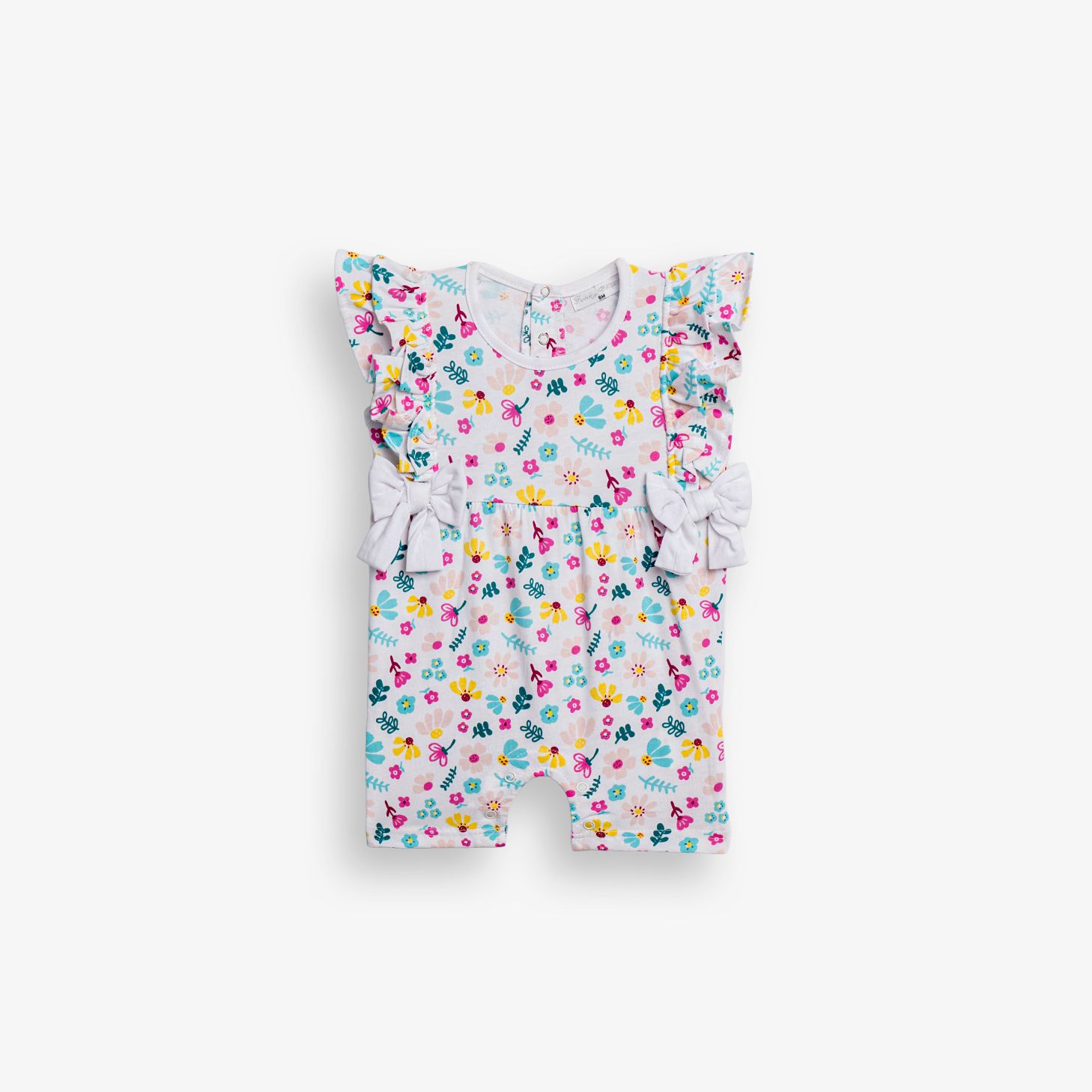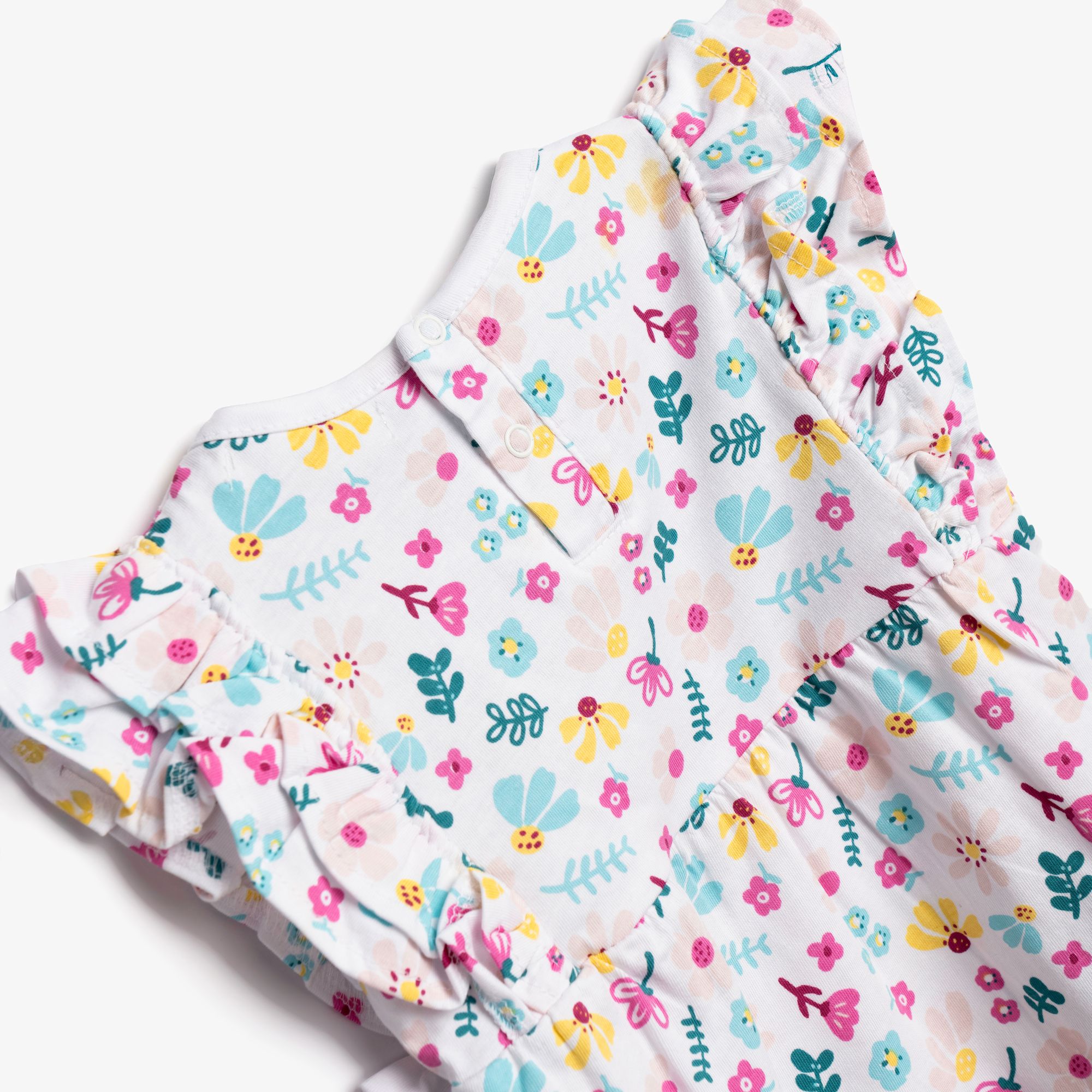 Φορμάκι κοντομάνικο κάλτσα με τύπωμα (φλοράλ) allover σε χρώμα λευκό για κορίτσι βρεφανάπτυξη