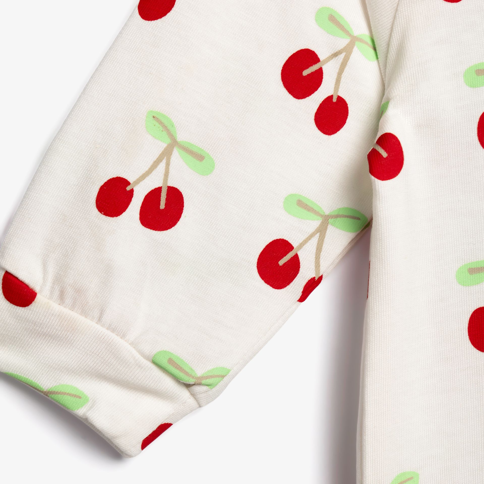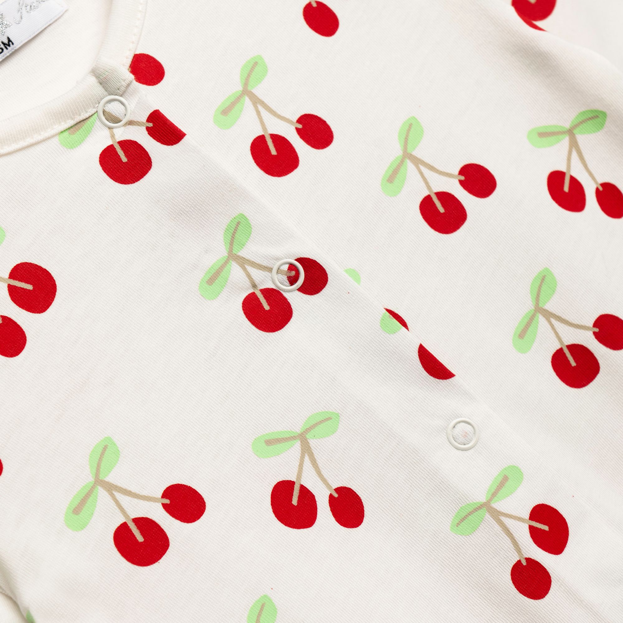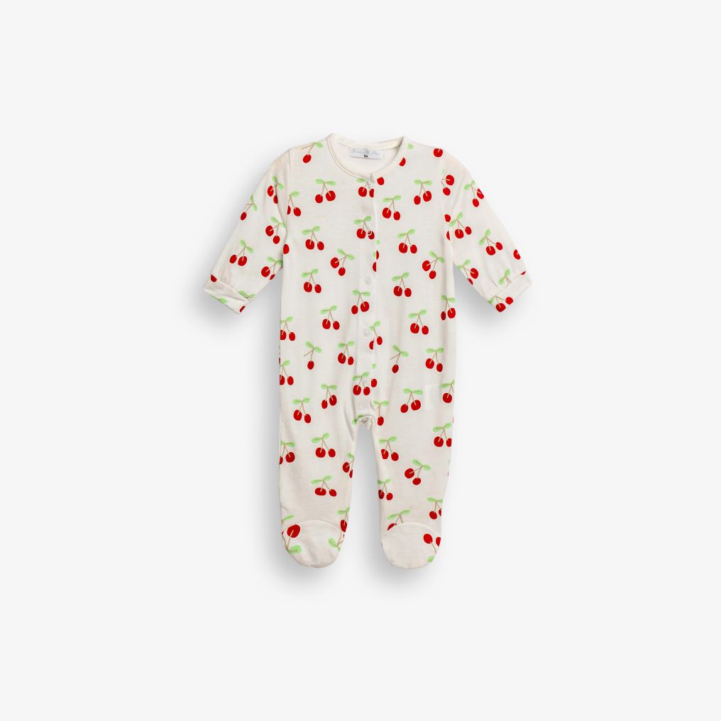 Φορμάκι μακρυμάνικο και σαλιάρα κάλτσα εκρού (κεράσια) σε χρώμα σε χρώμα εκρού allover/φωτεινό κόκκινο για κορίτσι βρεφανάπτυξη