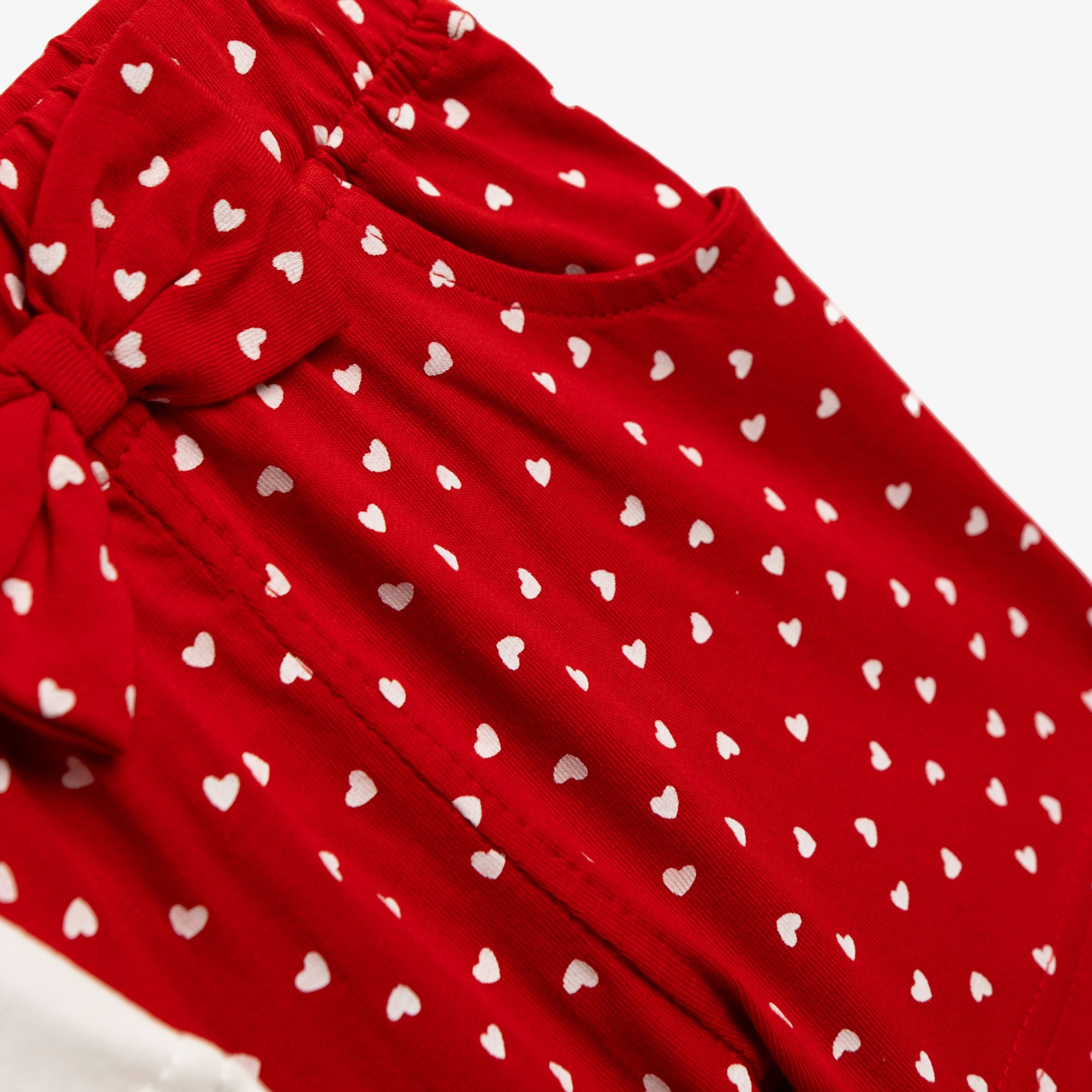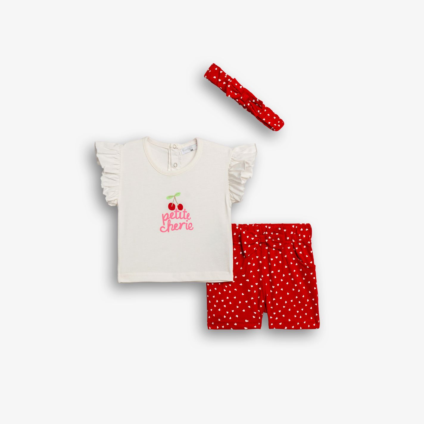 Σετ 3 τεμάχια μπλούζα κοντομάνικη και σόρτς και κορδέλα σε χρώμα εκρού/φωτεινό κόκκινο allover για κορίτσι βρεφανάπτυξη
