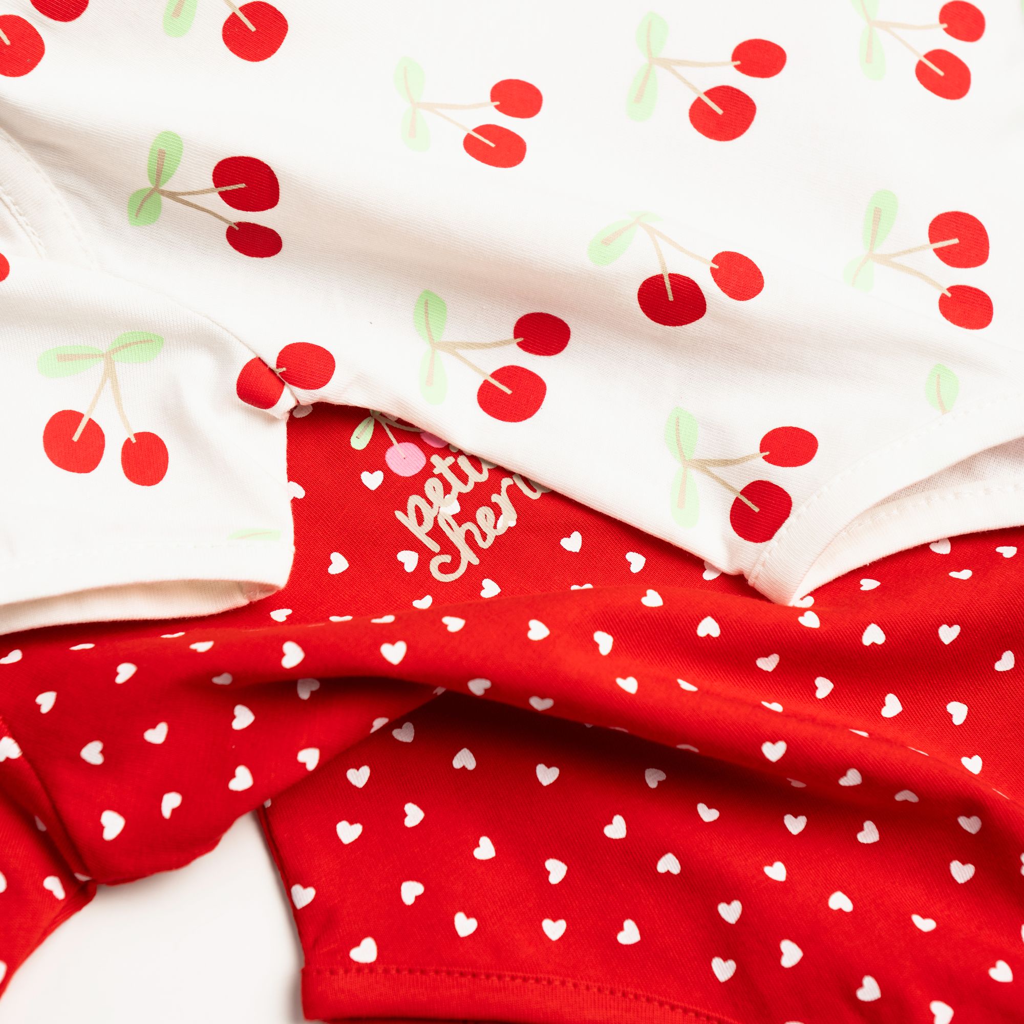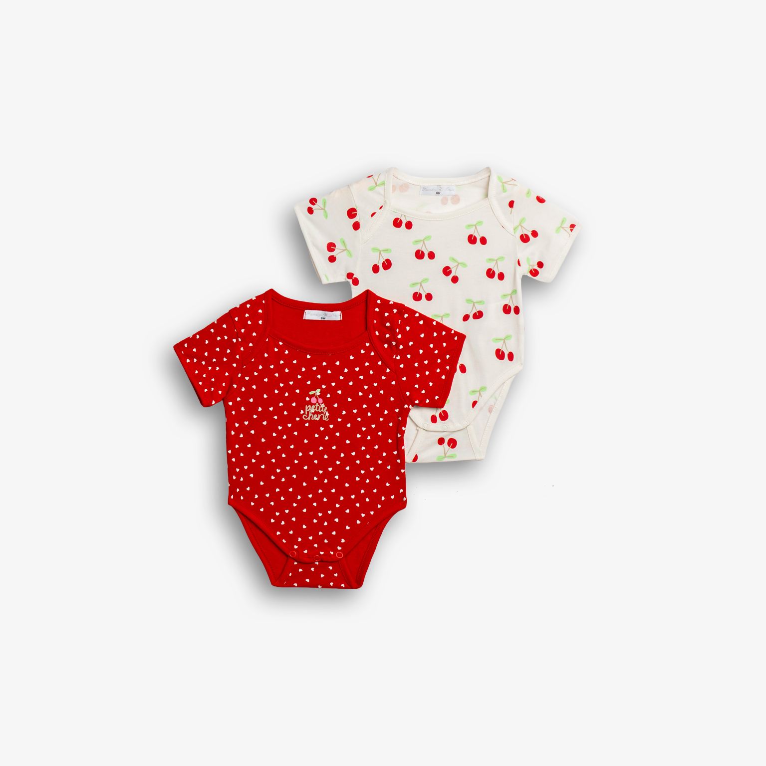 Σετ 2 τεμάχια κορμάκια με τύπωμα (κεράσια) σε χρώμα εκρού allover/φωτεινό κόκκινο allover για κορίτσι βρεφανάπτυξη