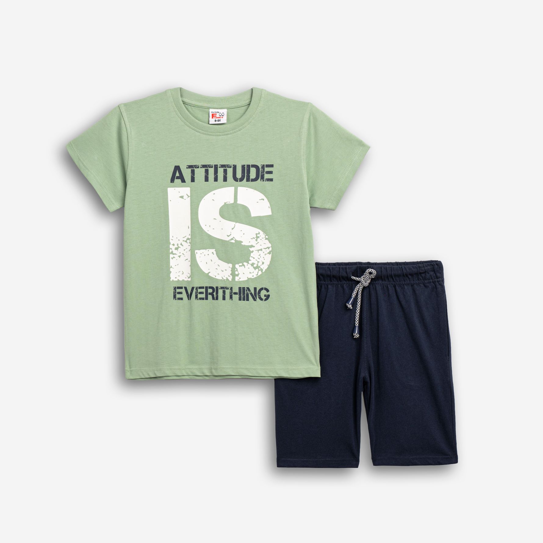 Σετ μακό κοντομάνικη μπλούζα με τύπωμα (attitude) και βερμούδα σε χρώμα γρασίδι/μπλέ για αγόρι 6-16 ετών