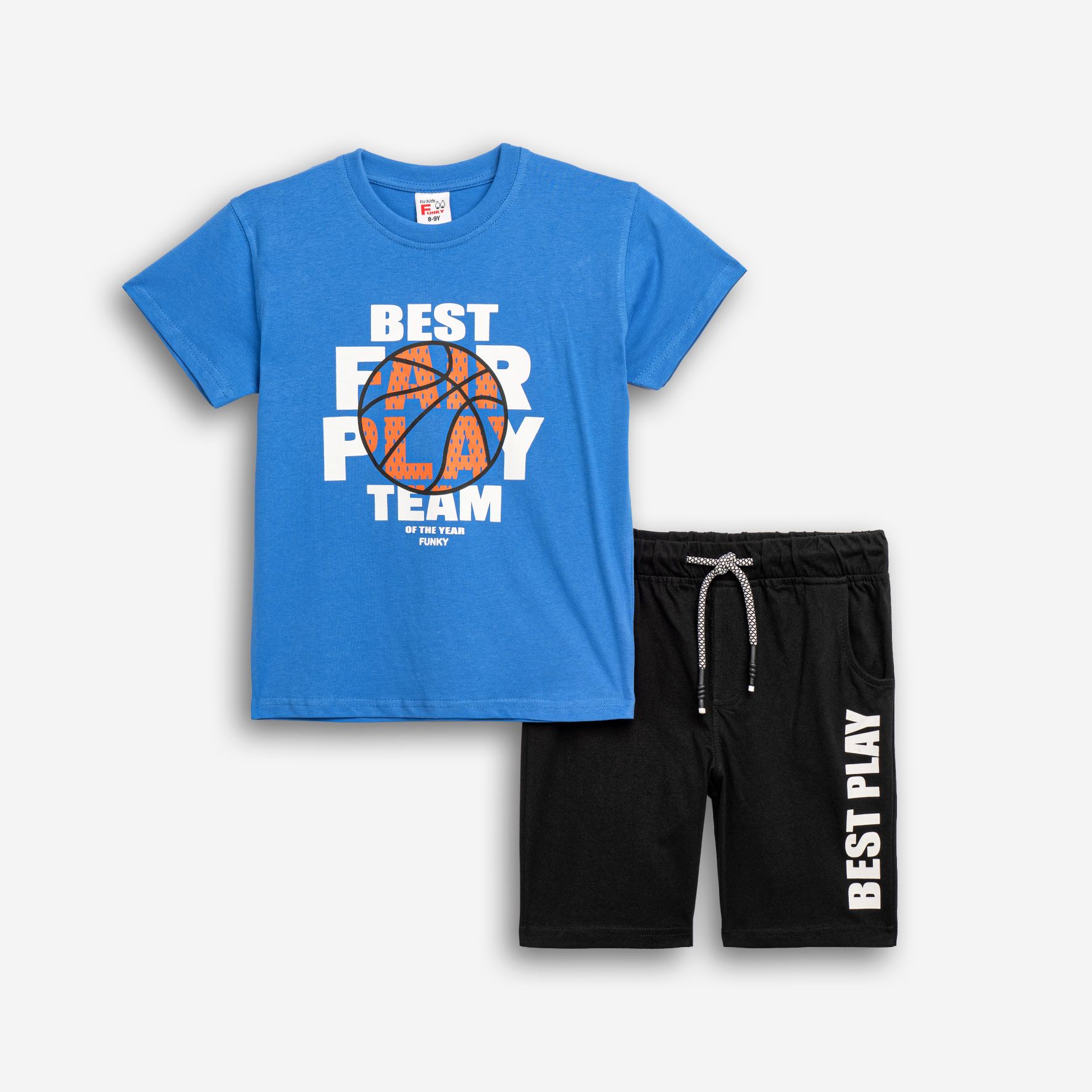 Σετ μακό κοντομάνικη μπλούζα με τύπωμα (best play) και βερμούδα με τύπωμα σε χρώμα ρουά/μαύρο για αγόρι 6-16 ετών
