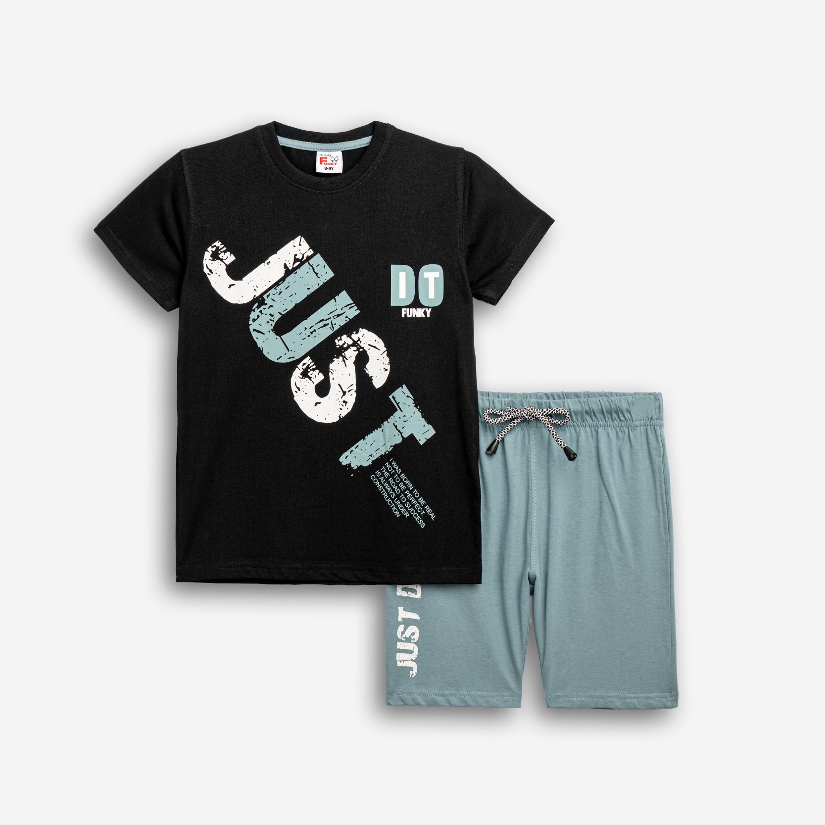 Σετ κοντομάνικη μπλούζα με τύπωμα (just do it) και βερμούδα φούτερ με τύπωμα σε χρώμα μαύρο/storm blue για αγόρι 6-16 ετών
