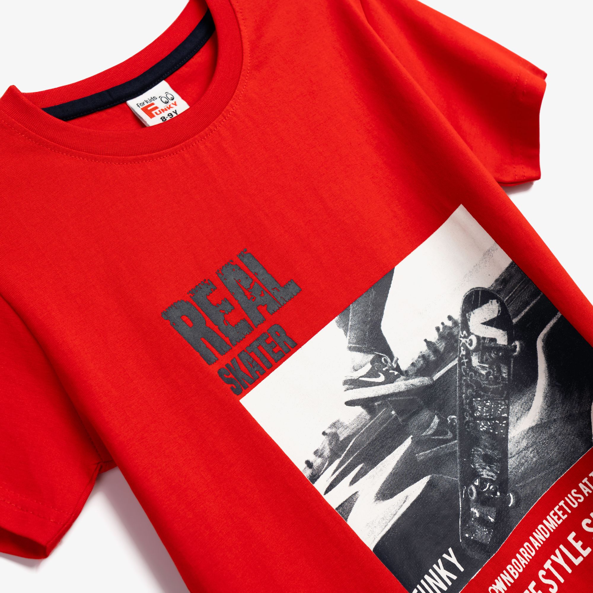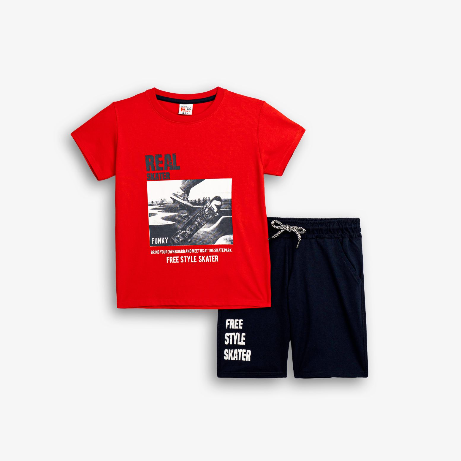 Σετ κοντομάνικη μπλούζα με τύπωμα (real skater) και βερμούδα φούτερ με τύπωμα σε χρώμα κόκκινο/μπλέ για αγόρι 6-16 ετών