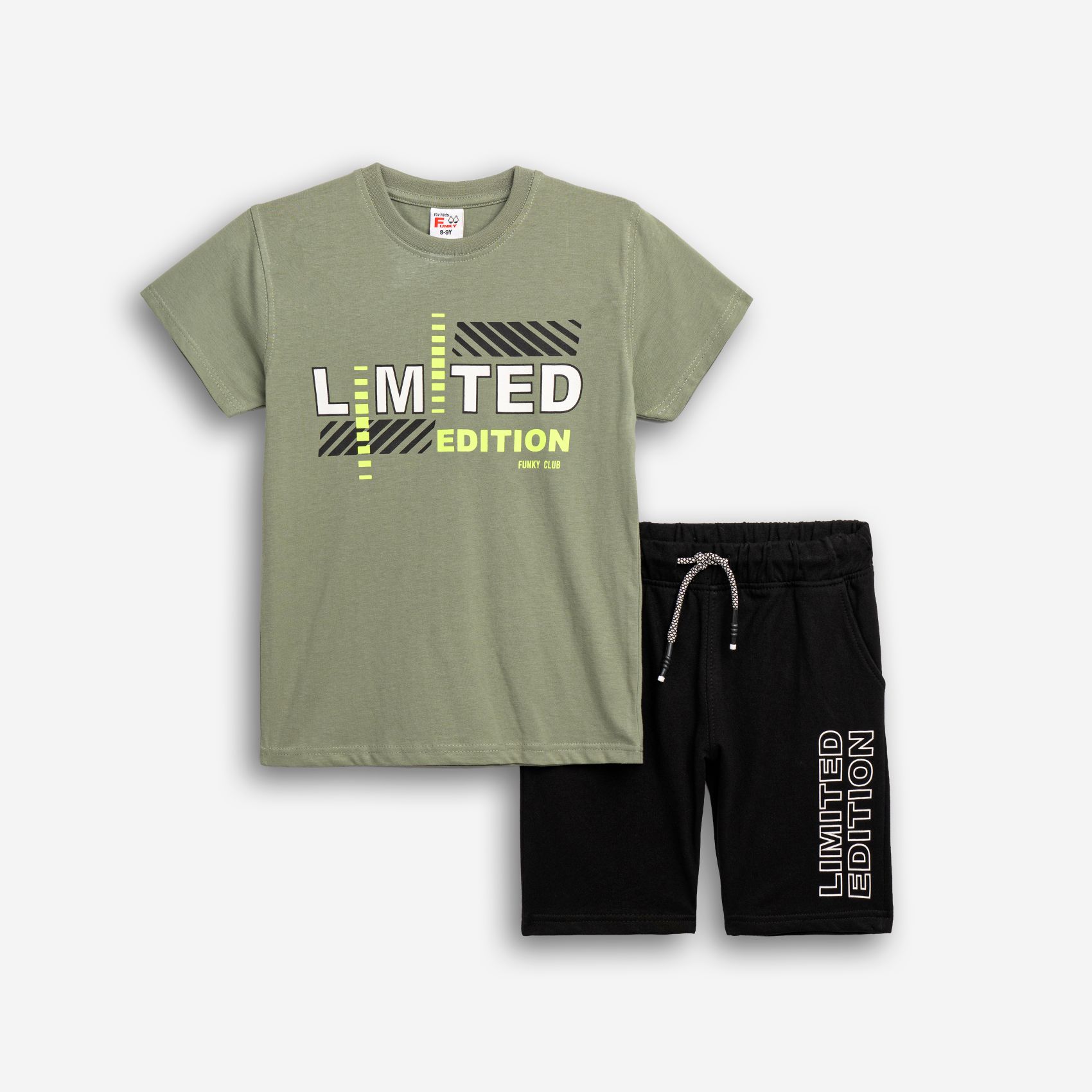 Σετ κοντομάνικη μπλούζα με τύπωμα (limited edition) και βερμούδα φούτερ με τύπωμα σε χρώμα ανοιχτό χακί/μαύρο για αγόρι 6-16 ετών