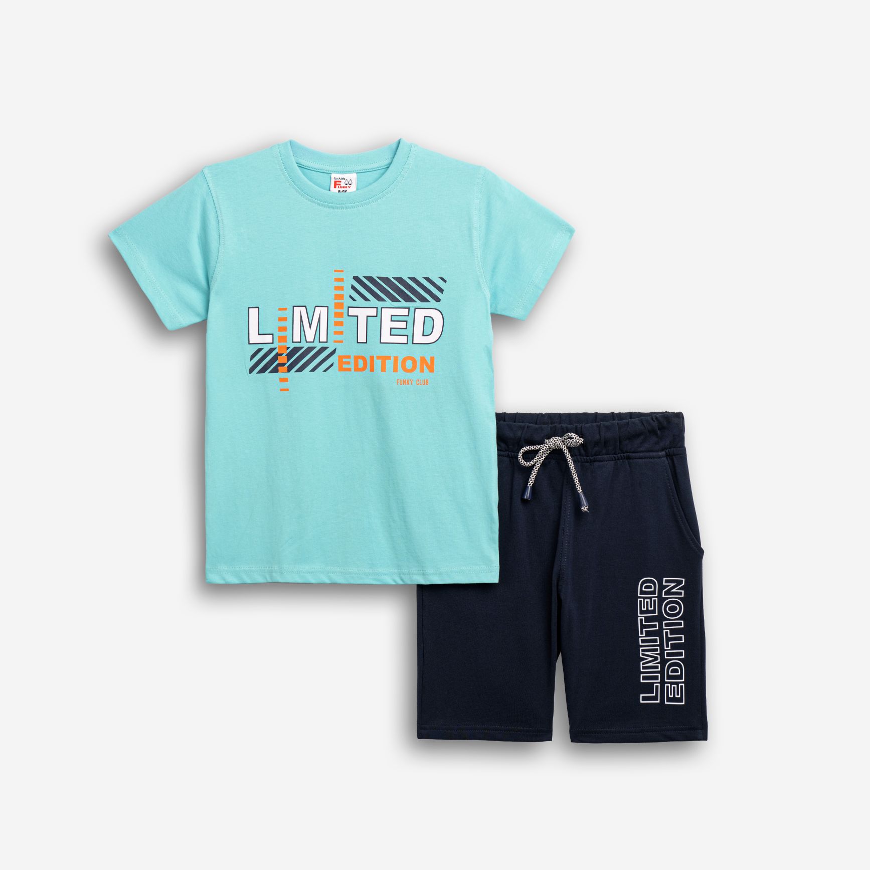 Σετ κοντομάνικη μπλούζα με τύπωμα (limited edition) και βερμούδα φούτερ με τύπωμα σε χρώμα τυρκουάζ/μπλέ για αγόρι 6-16 ετών