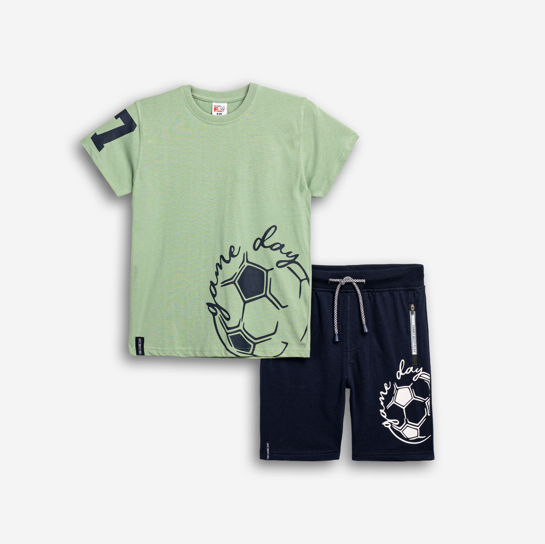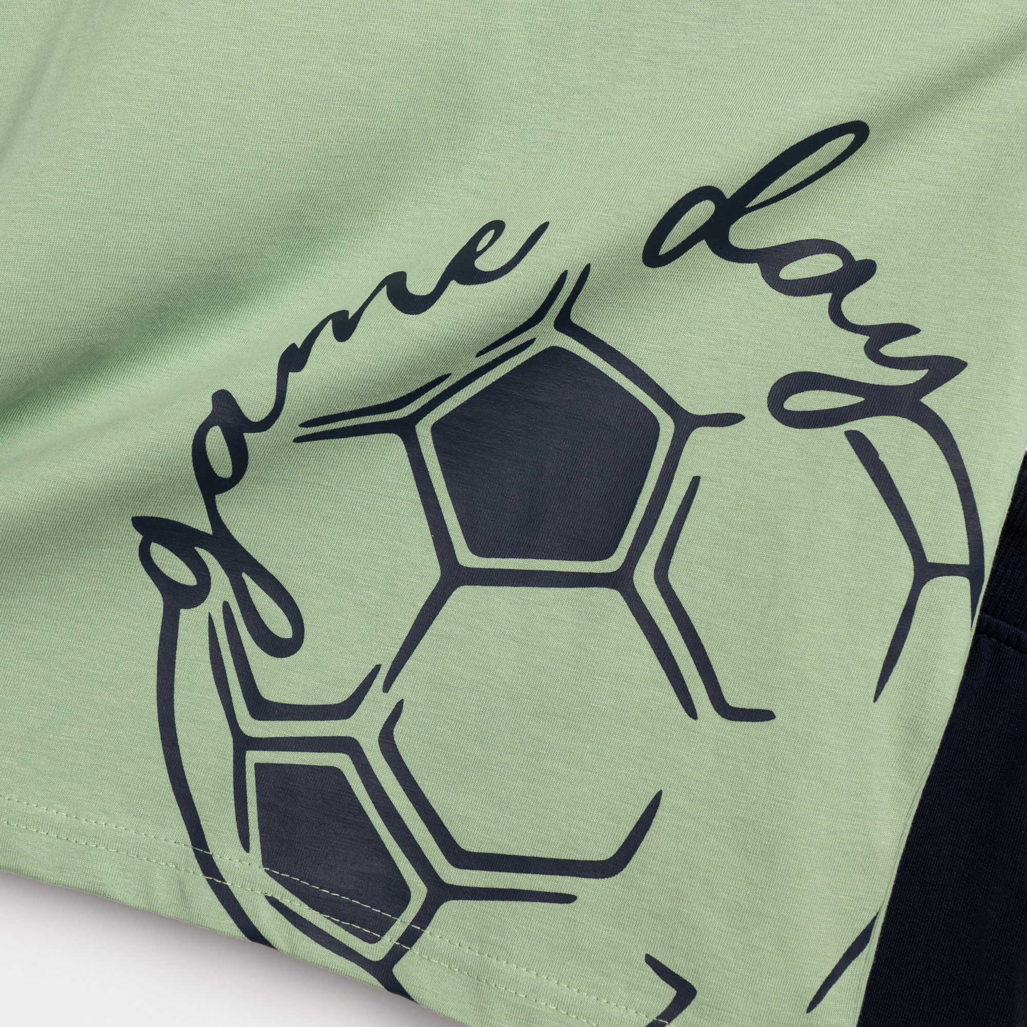 Σετ κοντομάνικη μπλούζα με τύπωμα (game day) και βερμούδα φούτερ με τύπωμα σε χρώμα γρασίδι/μπλέ για αγόρι 6-16 ετών
