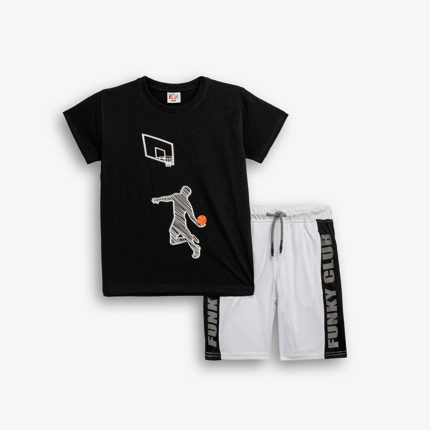 Σετ κοντομάνικη μπλούζα με τύπωμα (basketball player) και βερμούδα με τύπωμα σε χρώμα μαύρο/λευκό-μαύρο για αγόρι 6-16 ετών