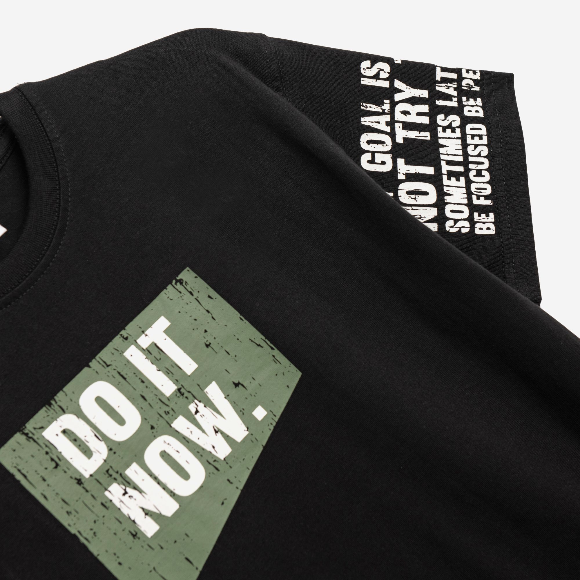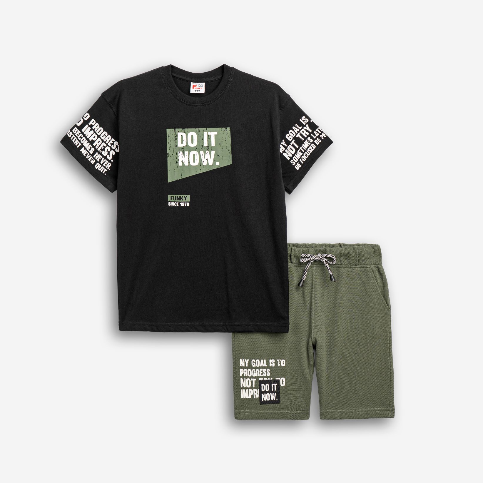 Σετ κοντομάνικη μπλούζα με τύπωμα (do it now) και βερμούδα πικέ με τύπωμα σε χρώμα μαύρο/χακί για αγόρι 6-16 ετών