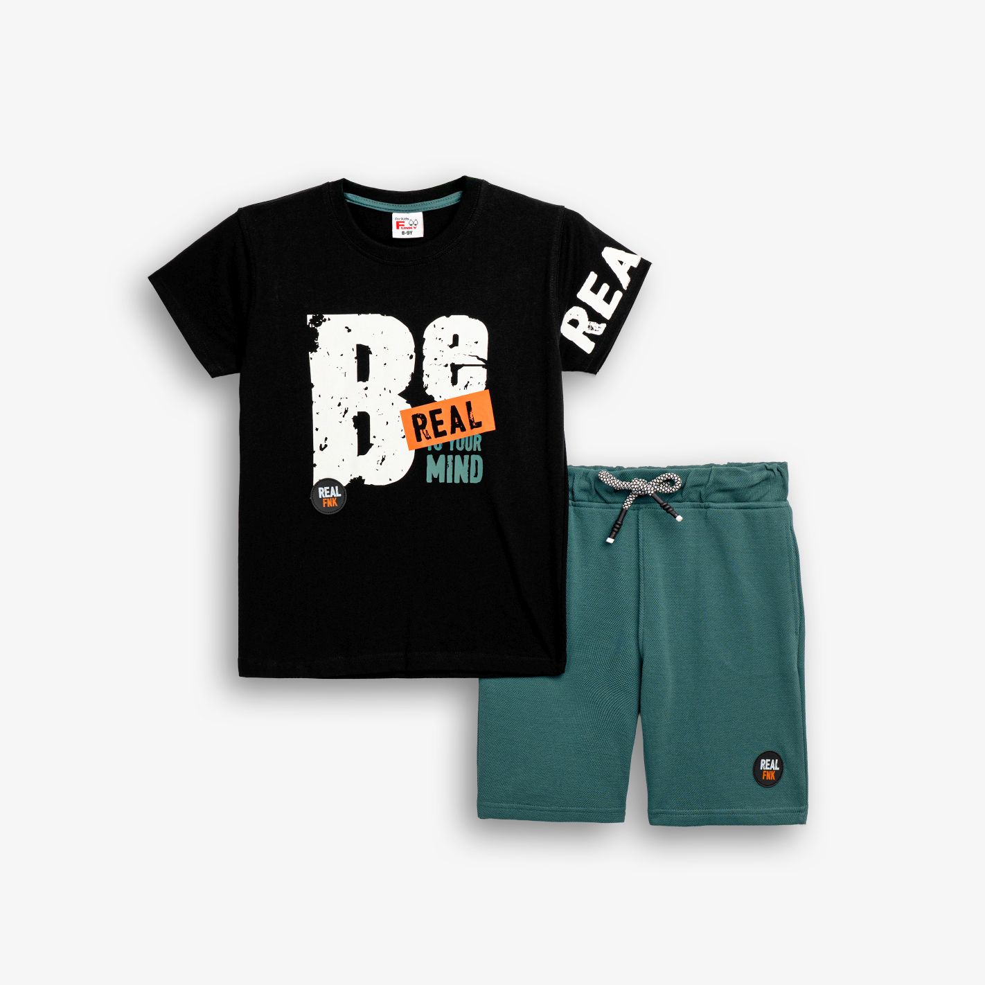 Σετ κοντομάνικη μπλούζα με τύπωμα (be real) και βερμούδα πικέ με τύπωμα σε χρώμα μαύρο/deep lake για αγόρι 6-16 ετών