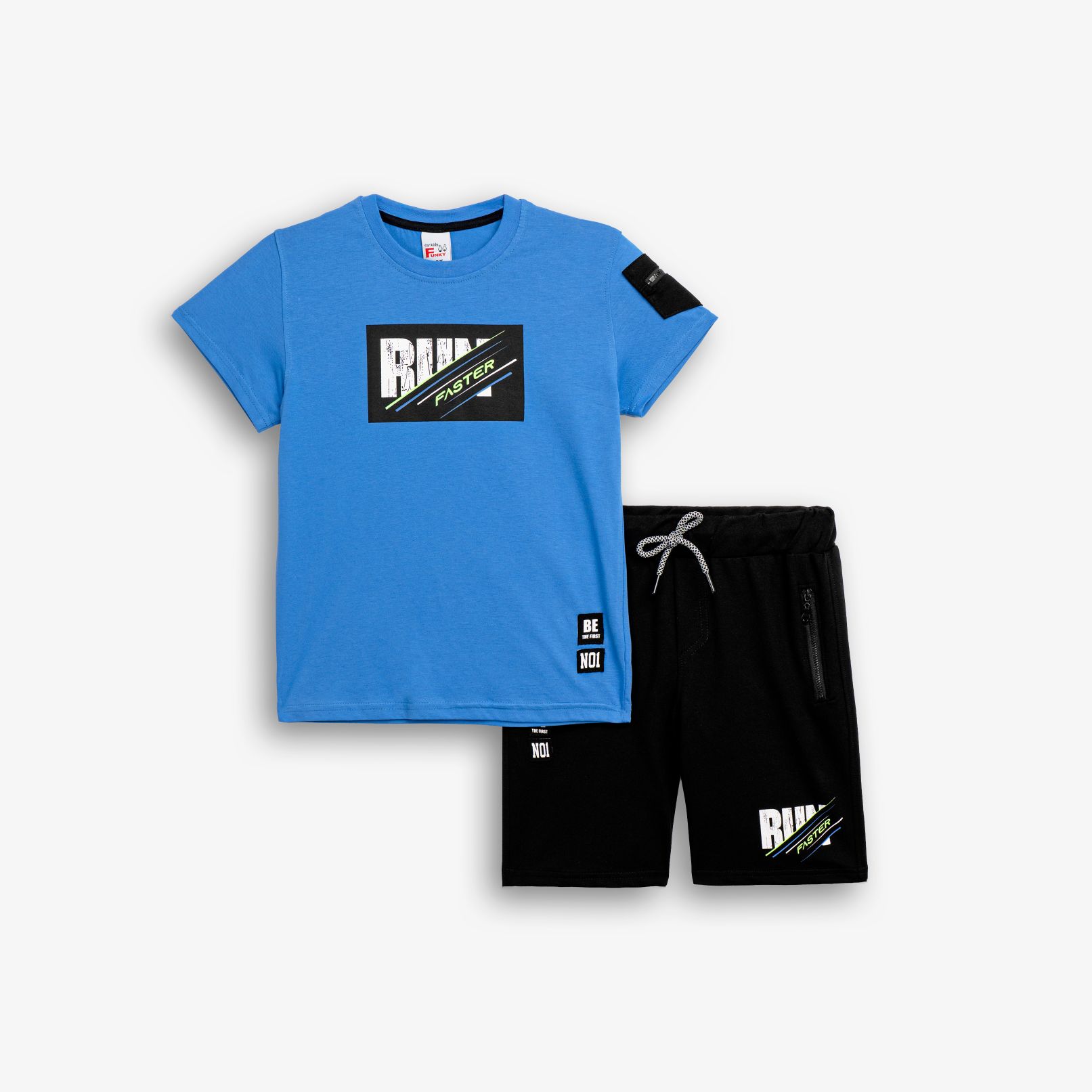Σετ κοντομάνικη μπλούζα με τύπωμα (run) και βερμούδα με τύπωμα σε χρώμα ανοιχτό ρουά/μαύρο για αγόρι 6-16 ετών