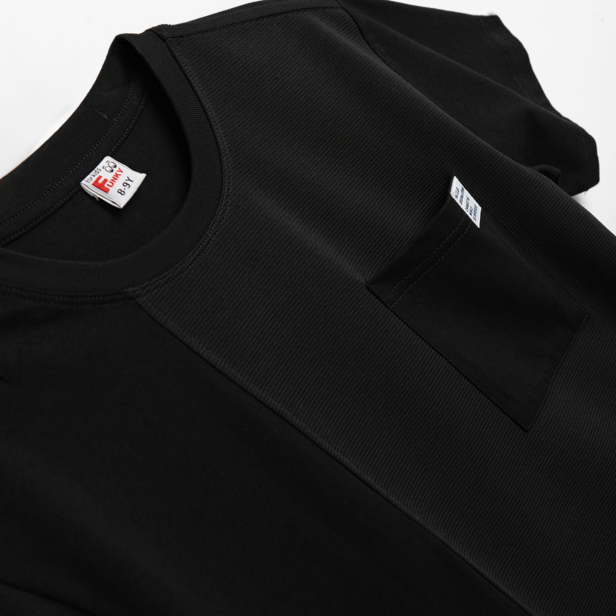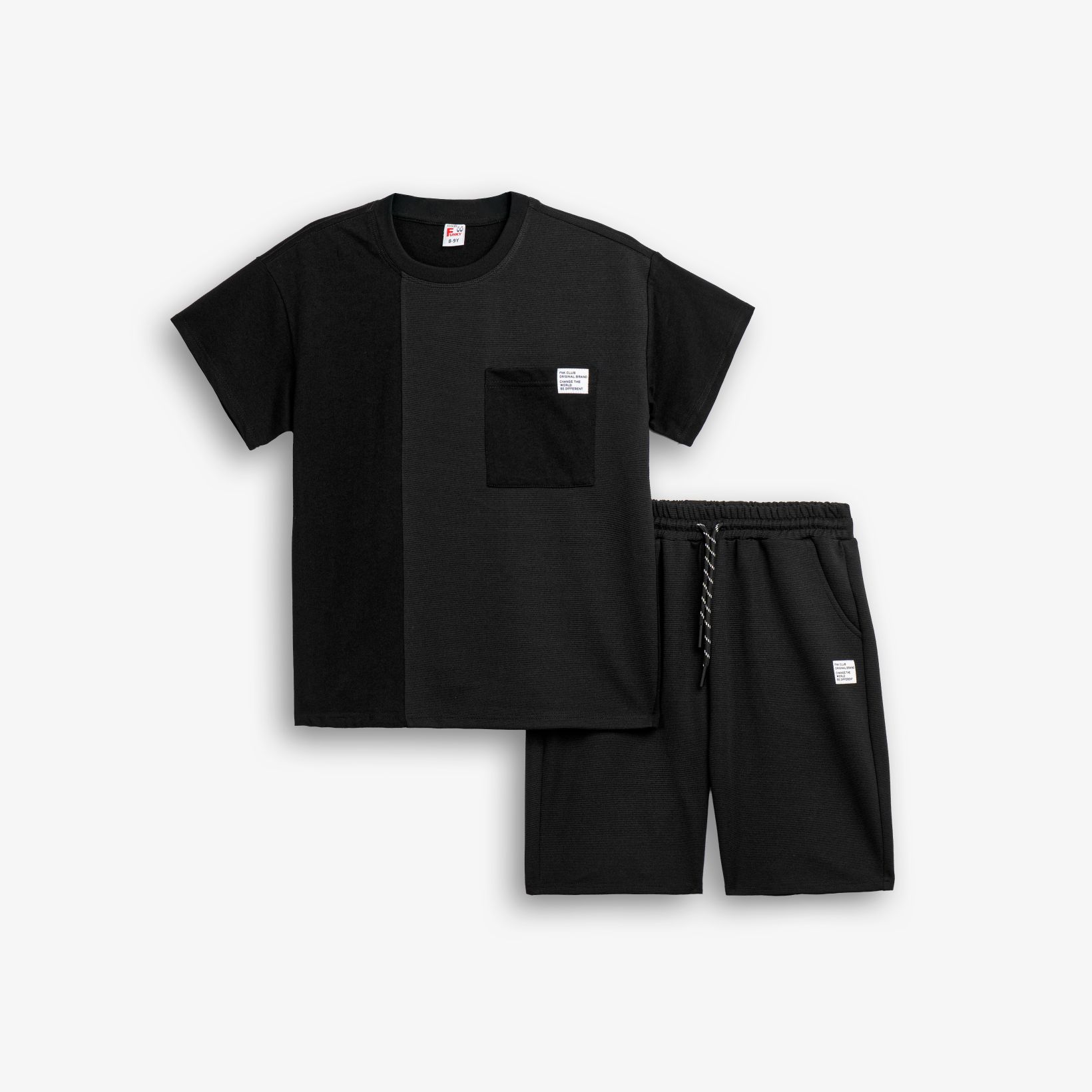 Σετ κοντομάνικη μπλούζα με τσεπάκι και βερμούδα σε χρώμα μαύρο/μαύρο για αγόρι 6-16 ετών
