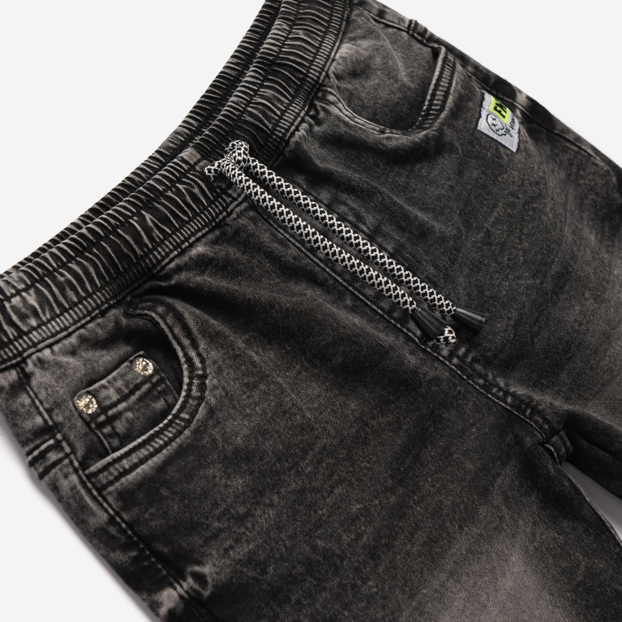 Σετ μπλούζα με τύπωμα (street rules) και βερμούδα φούτερ τζίν σε χρώμα λευκό/μαύρο τζίν για αγόρι 6-16 ετών