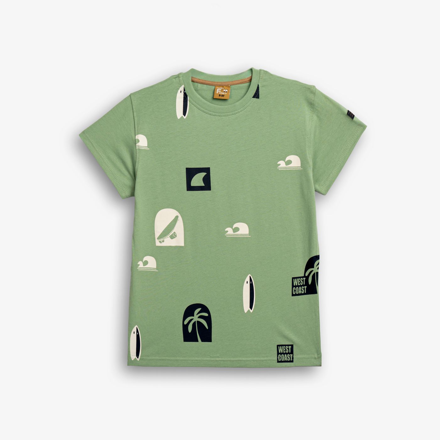 Μπλούζα κοντομάνικη κάλτσα με τύπωμα (καλοκαιρινά σχέδια) allover σε χρώμα γρασίδι για αγόρι 6-16 ετών