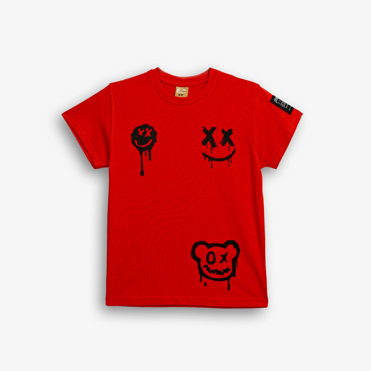 Μπλούζα κοντομάνικη κάλτσα με τύπωμα (φατσούλες) σε χρώμα κόκκινο για αγόρι 6-16 ετών