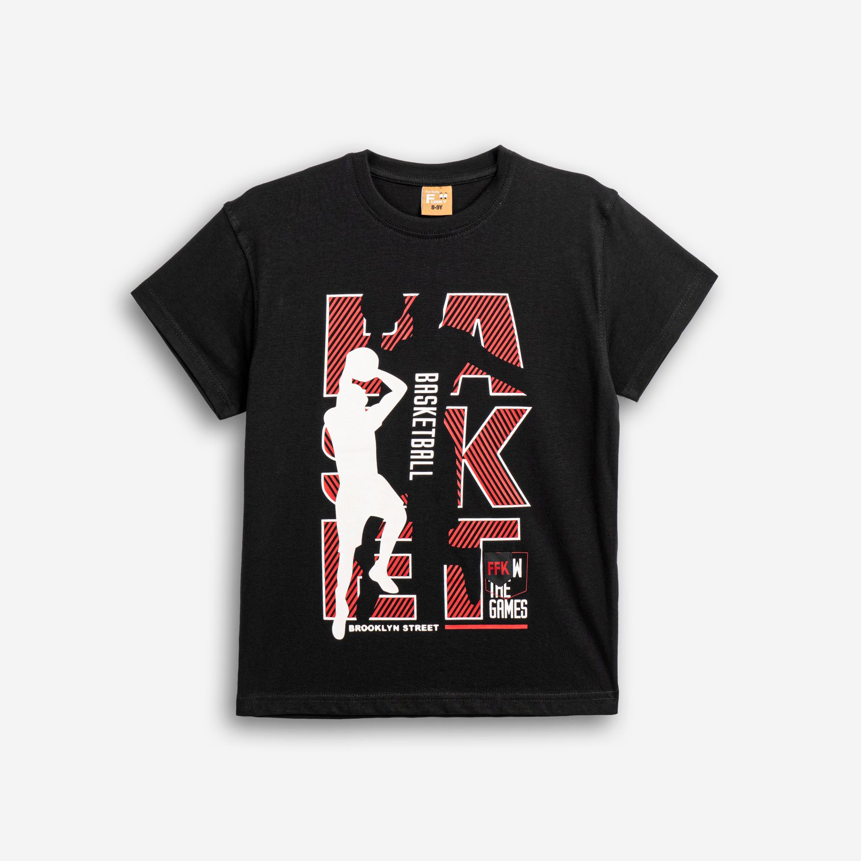Μπλούζα κοντομάνικη κάλτσα με τύπωμα (basketball player) σε χρώμα μαύρο για αγόρι 6-16 ετών