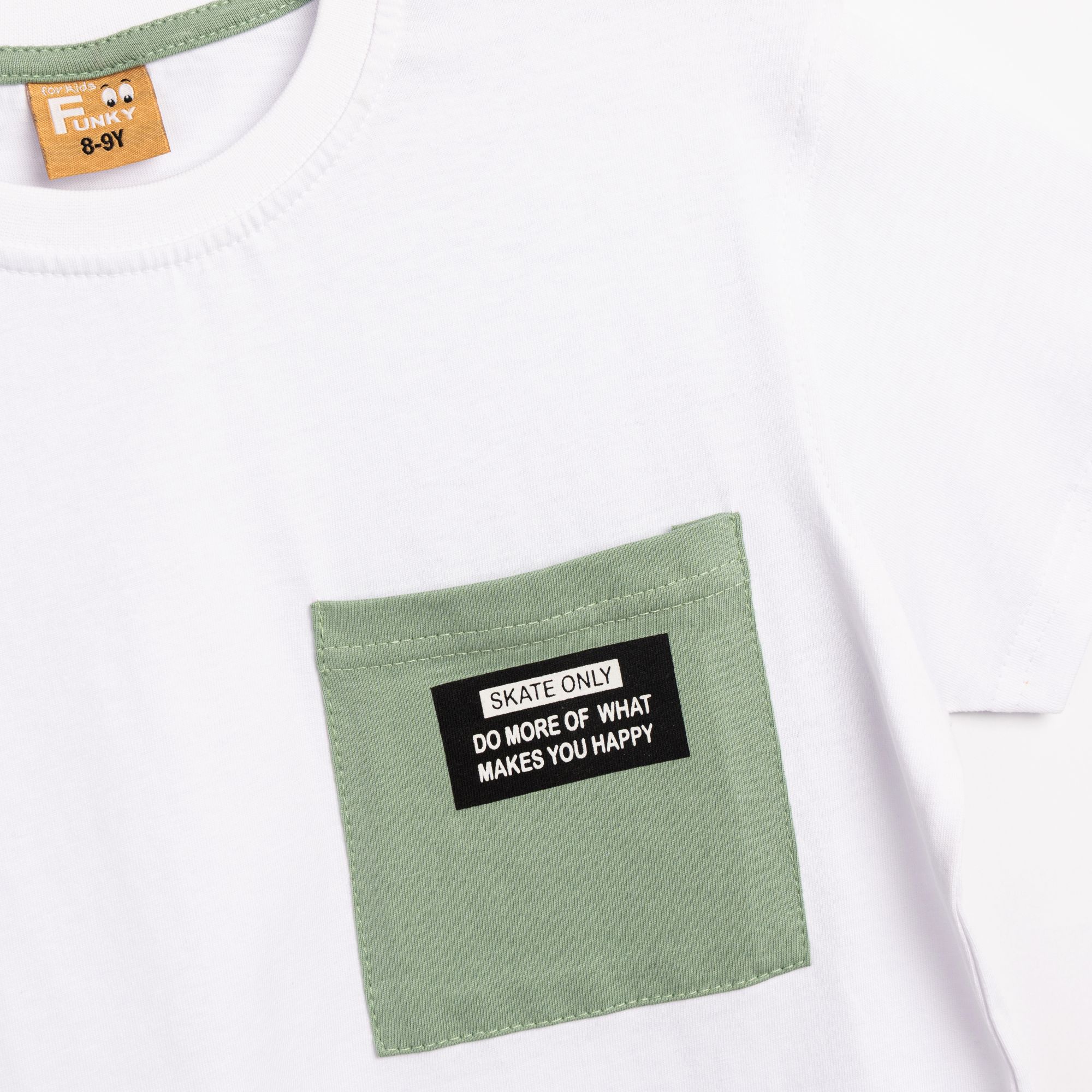 Μπλούζα κοντομάνικη κάλτσα με τύπωμα και τσεπάκι σε χρώμα λευκό-βασιλικός για αγόρι 6-16 ετών