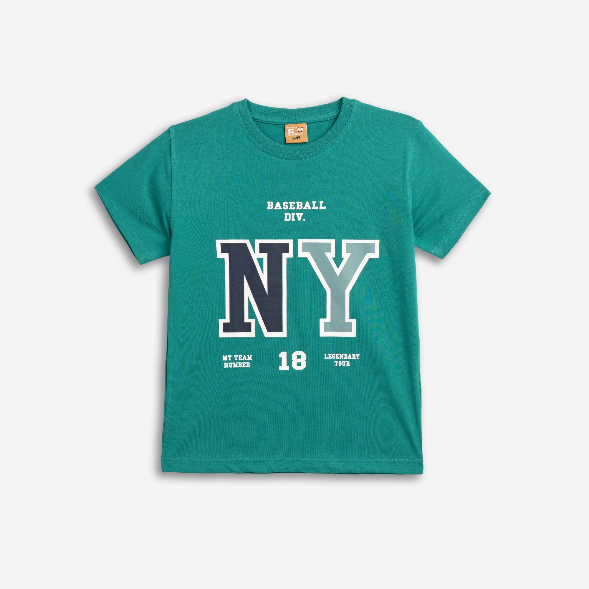 Μπλούζα κοντομάνικη κάλτσα με τύπωμα (NY) σε χρώμα greenlake για αγόρι 6-16 ετών