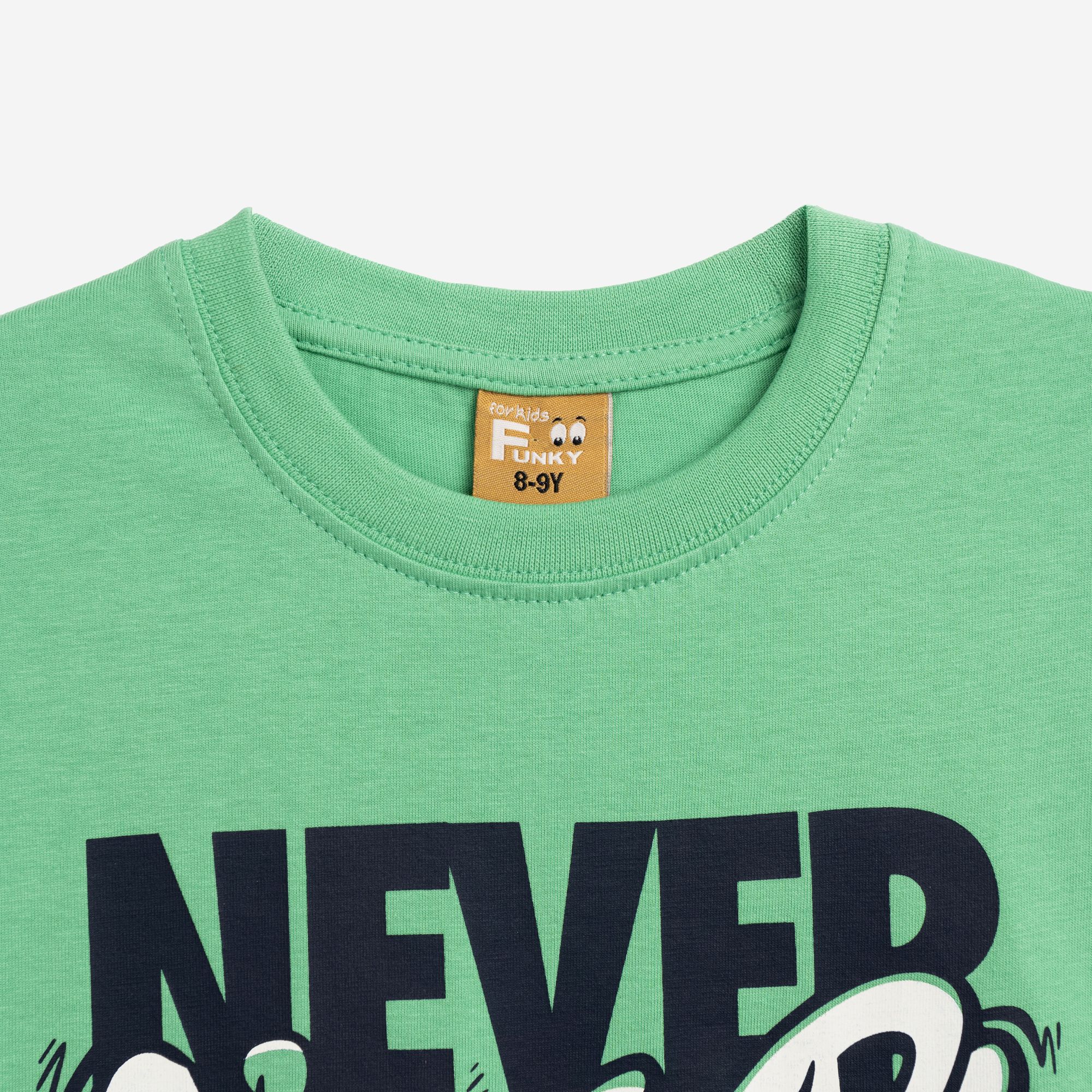 Μπλούζα κοντομάνικη κάλτσα με τύπωμα (never give up) σε χρώμα πράσινο παπαγάλου για αγόρι 6-16 ετών
