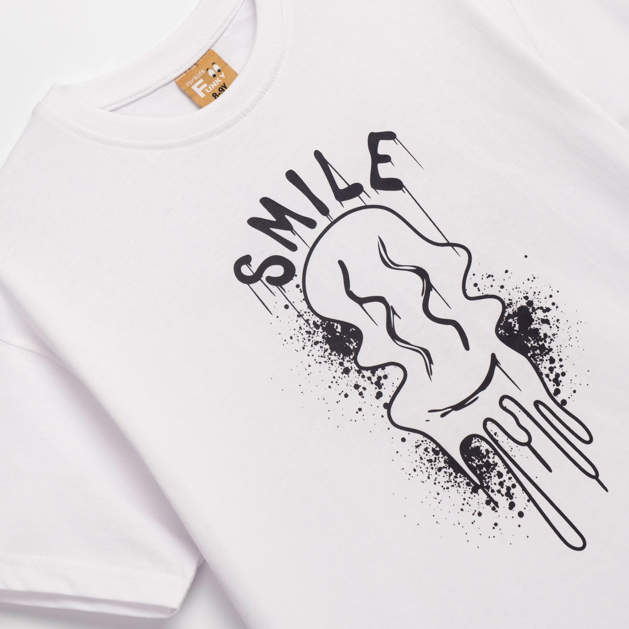 Μπλούζα κοντομάνικη κάλτσα με τύπωμα (φατσούλες) σε χρώμα λευκό για αγόρι 6-16 ετών
