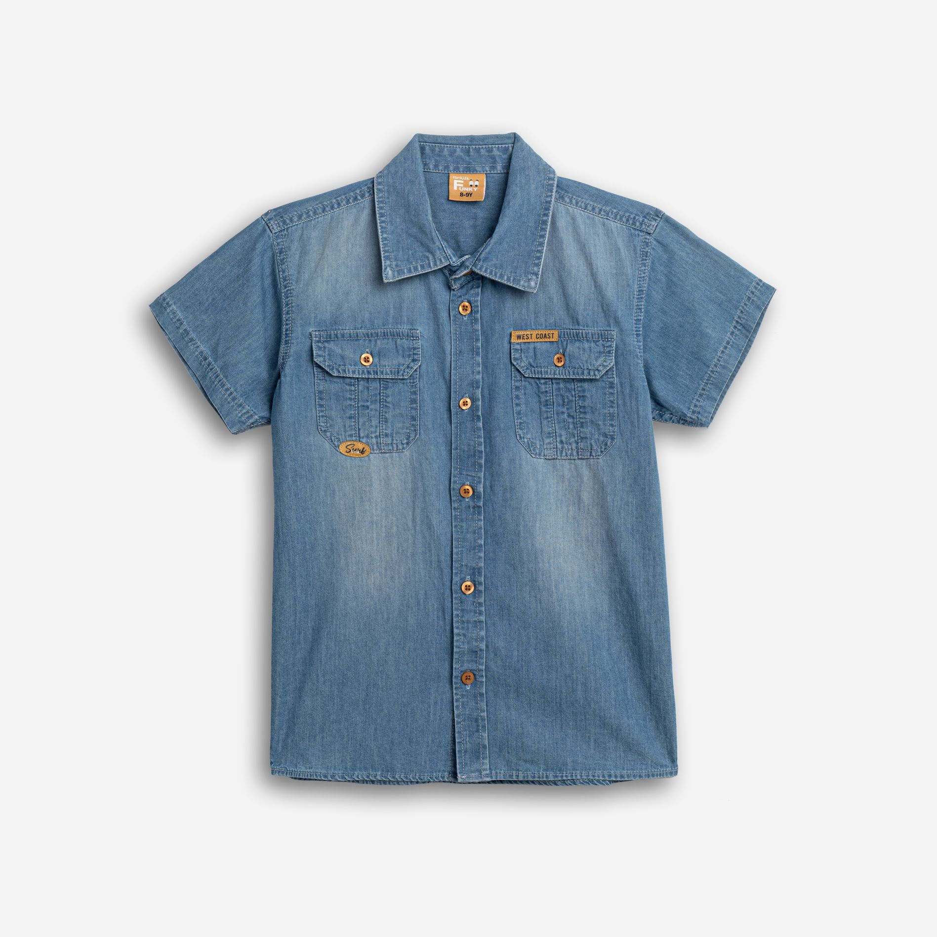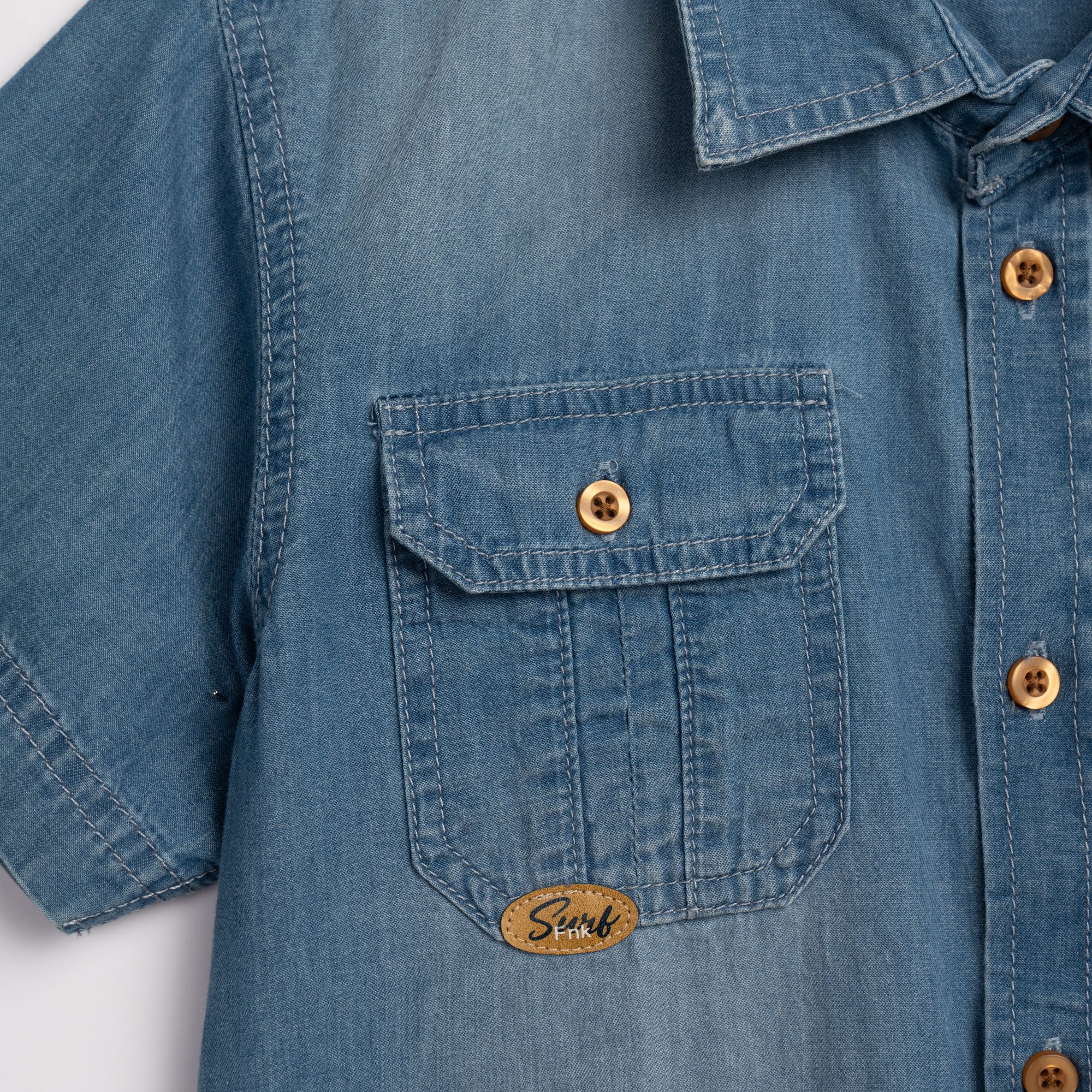 Πουκάμισο κοντομάνικο τζίν μαλακό με τσεπάκια σε χρώμα μπλέ τζίν για αγόρι 6-16 ετών