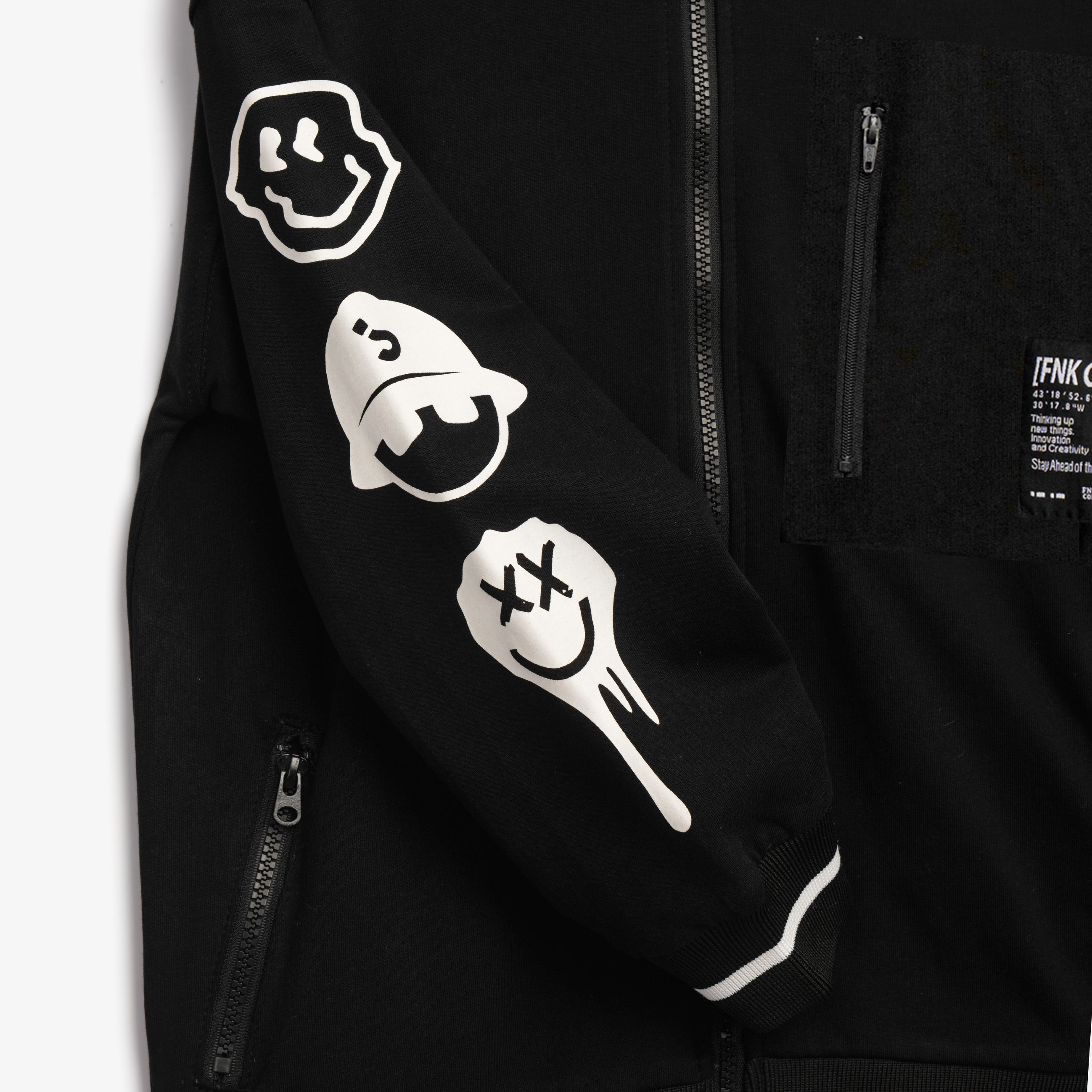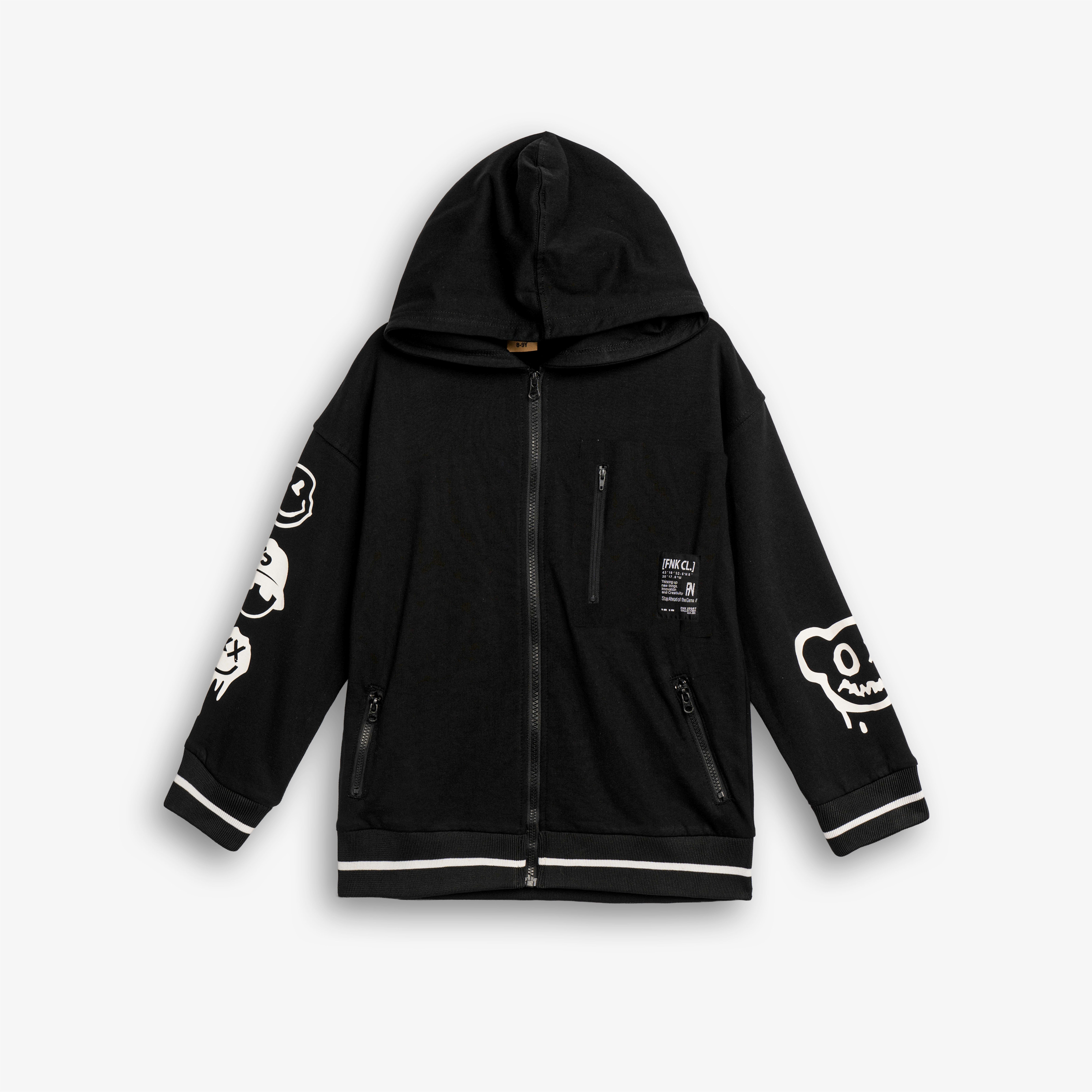 Ζακέτα φούτερ με τύπωμα (φατσούλες) σε χρώμα μαύρο για αγόρι 6-16 ετών