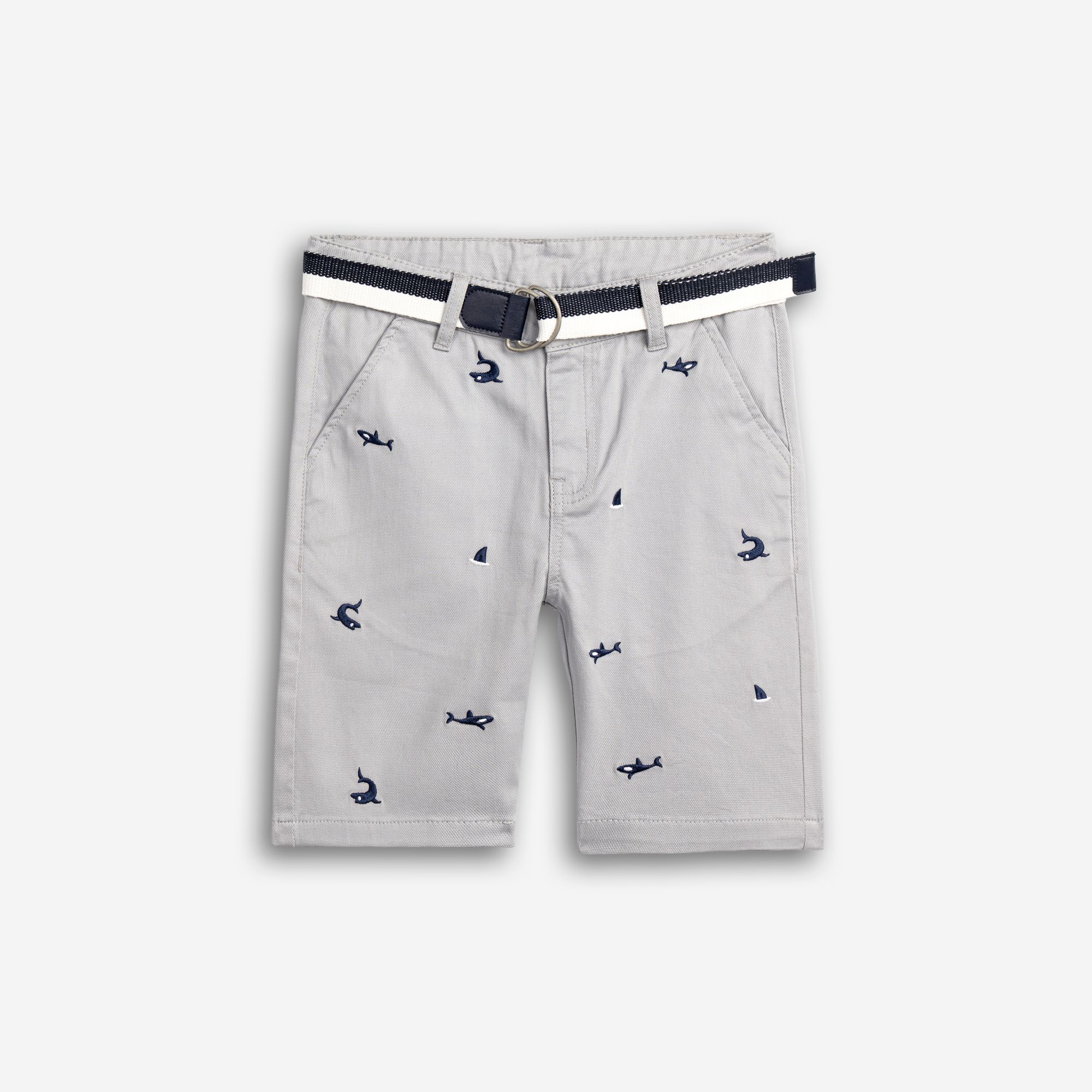 Βερμούδα λύκρα με ζώνη και τύπωμα (καρχαρίες) allover σε χρώμα silver grey για αγόρι 6-16 ετών