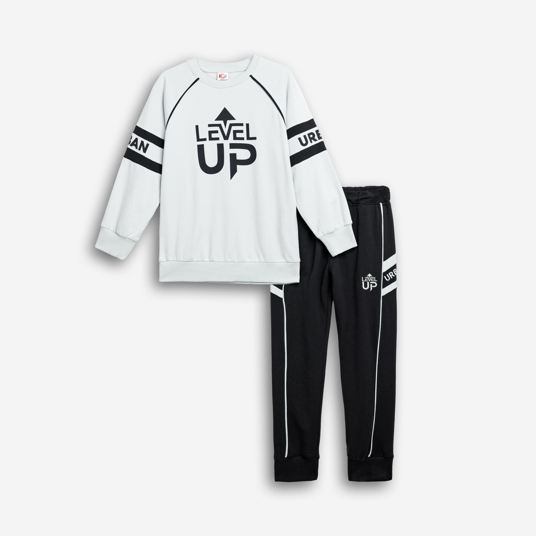 Φόρμα φούτερ μακρυμάνικη με τύπωμα (level up) και παντελόνι φόρμας με τύπωμα με λάστιχο σε χρώμα λευκό/μαύρο για αγόρι 6-16 ετών