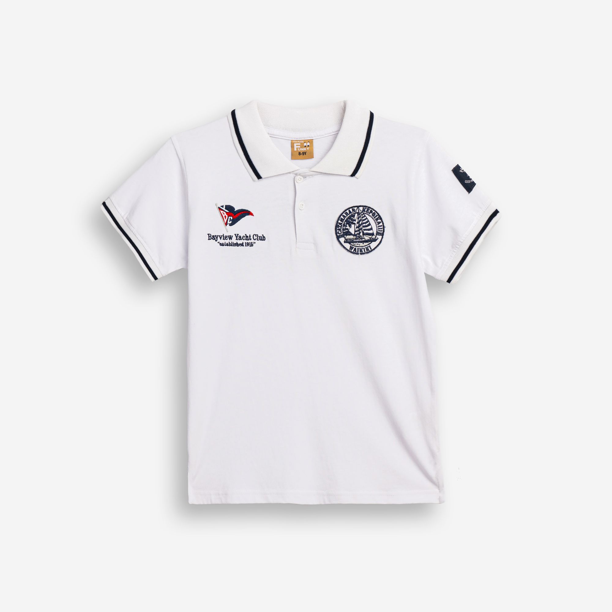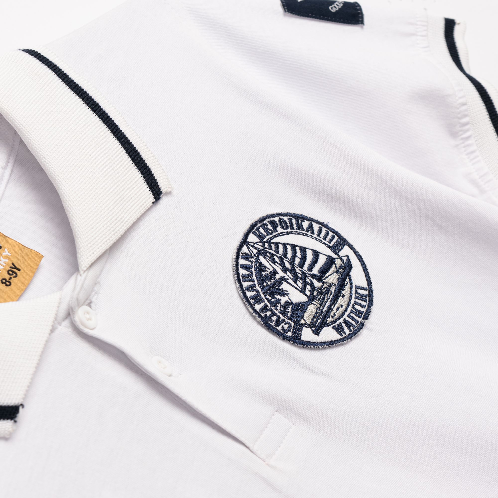 Μπλούζα κοντομάνικη πόλο κάλτσα με τύπωμα (offshore sailing) σε χρώμα λευκό για αγόρι 6-16 ετών