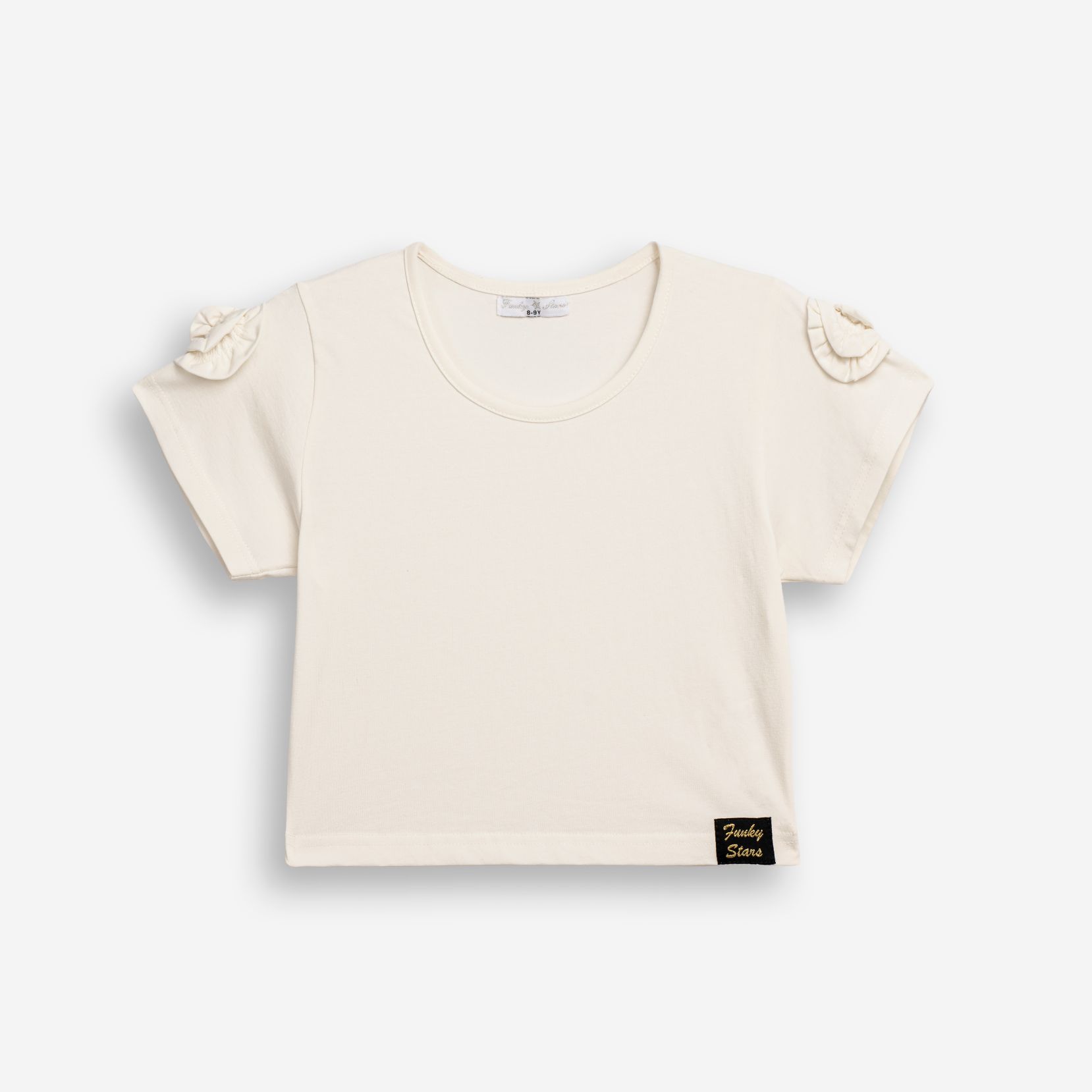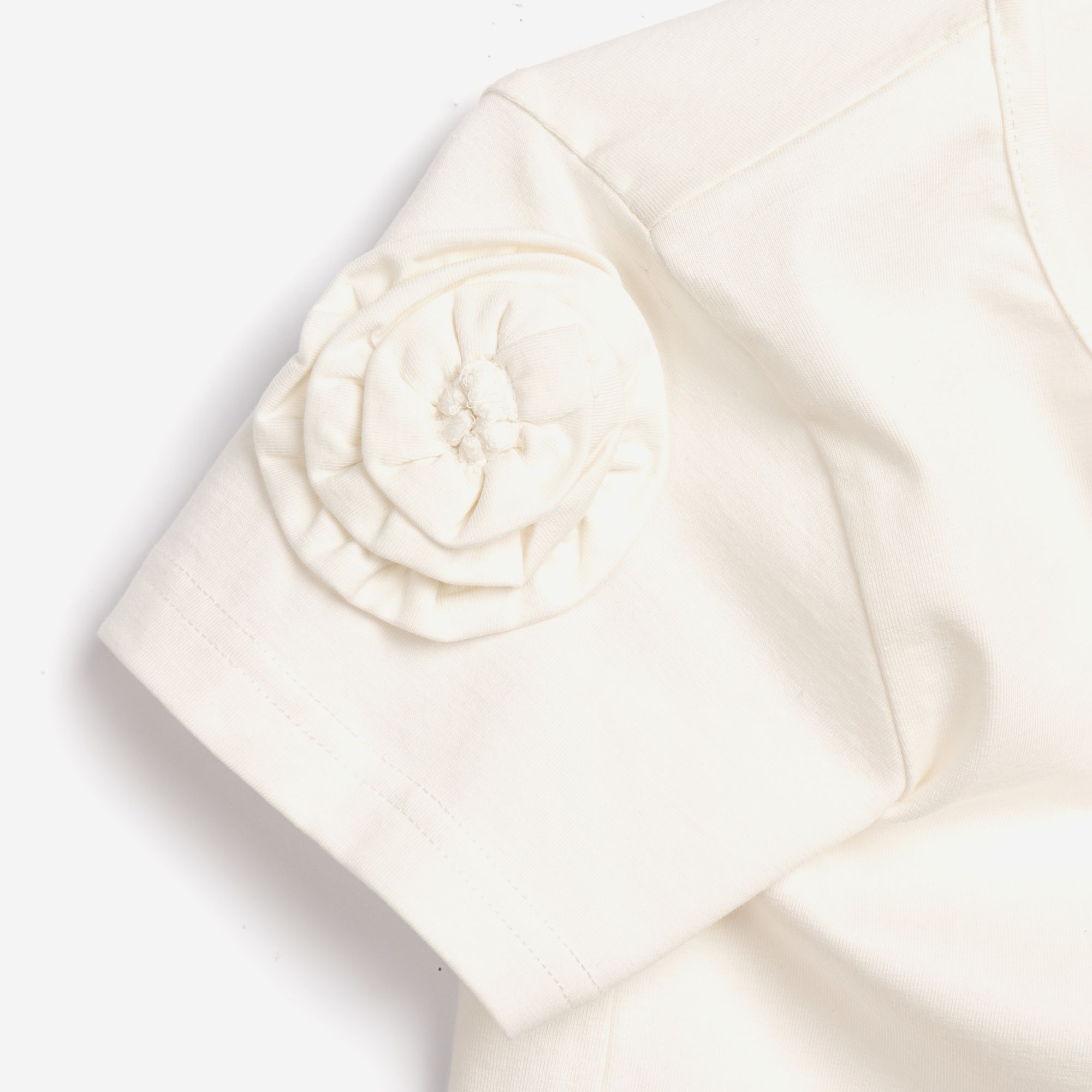 Μπλούζα κοντομάνικη κάλτσα λύκρα με τριαντάφυλλα στα μανίκια σε χρώμα εκρού για κορίτσι 6-16 ετών