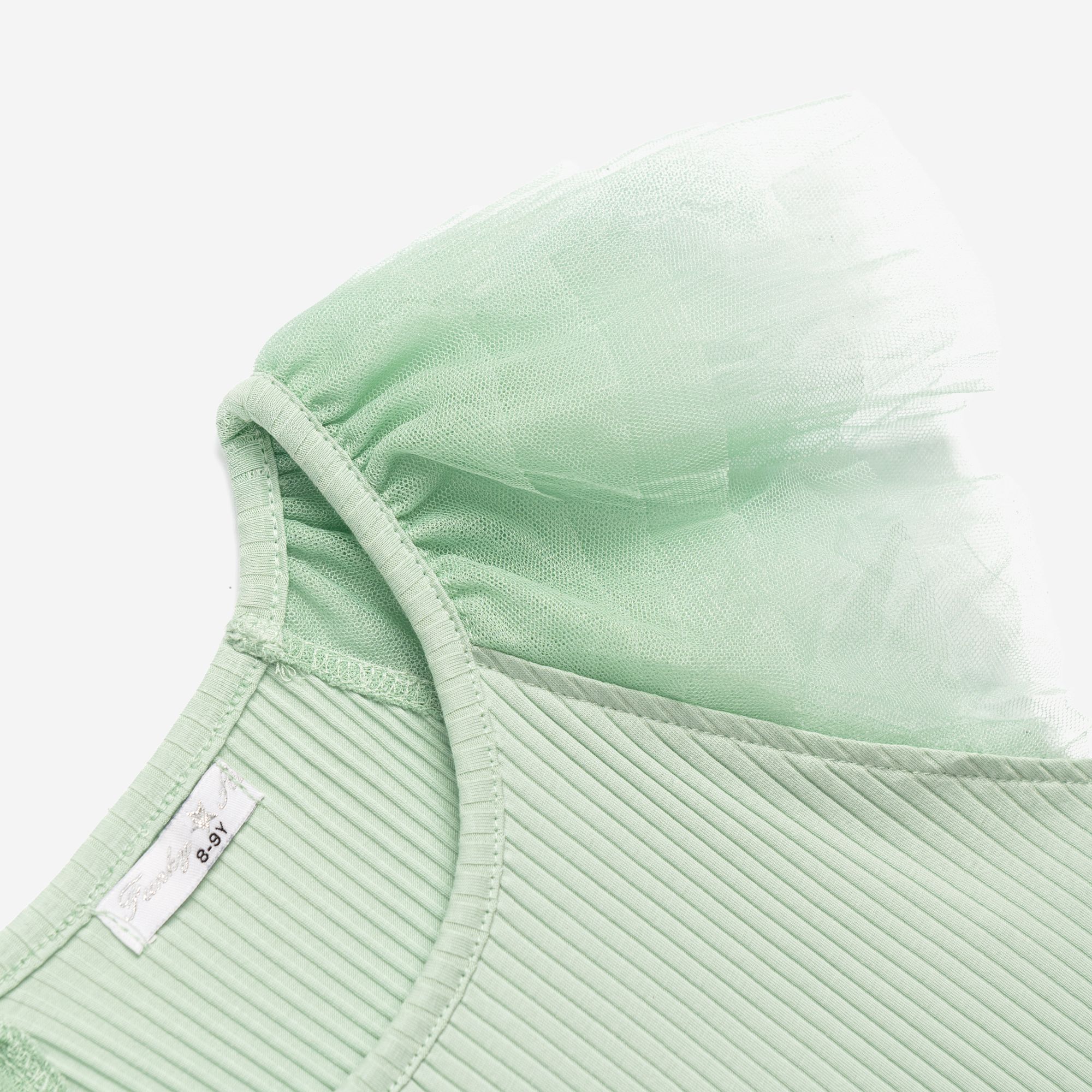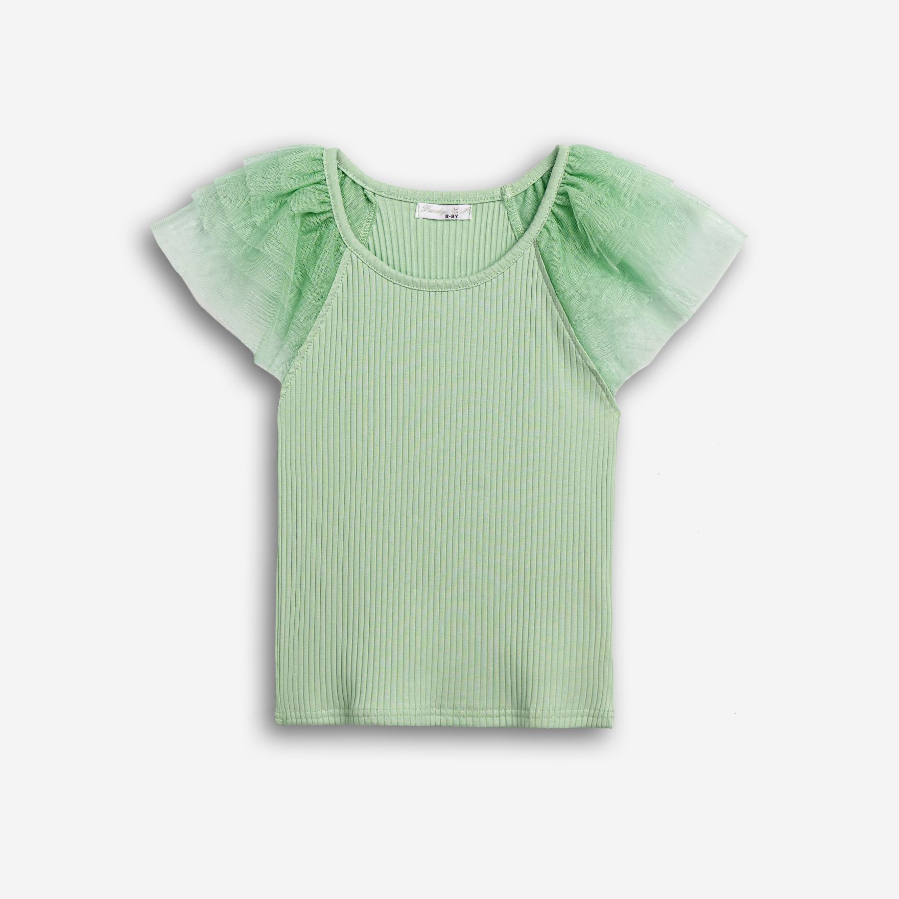 Μπλούζα ριπ με τούλι στα μανίκια σε χρώμα φυστικί για κορίτσι 6-16 ετών