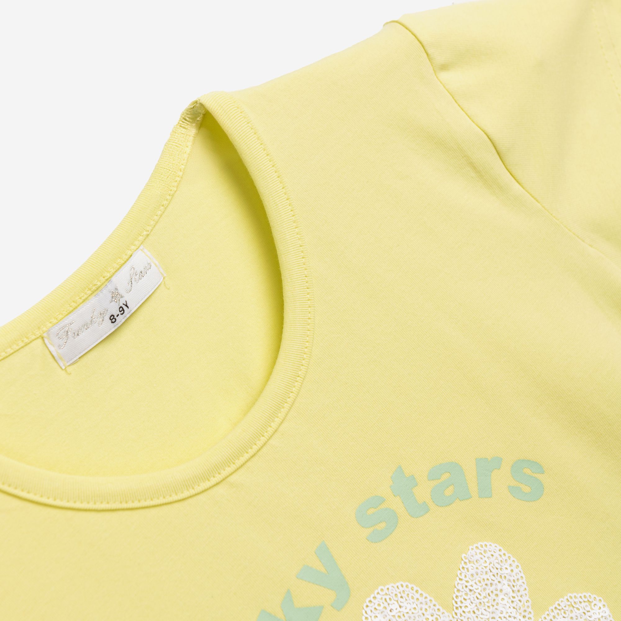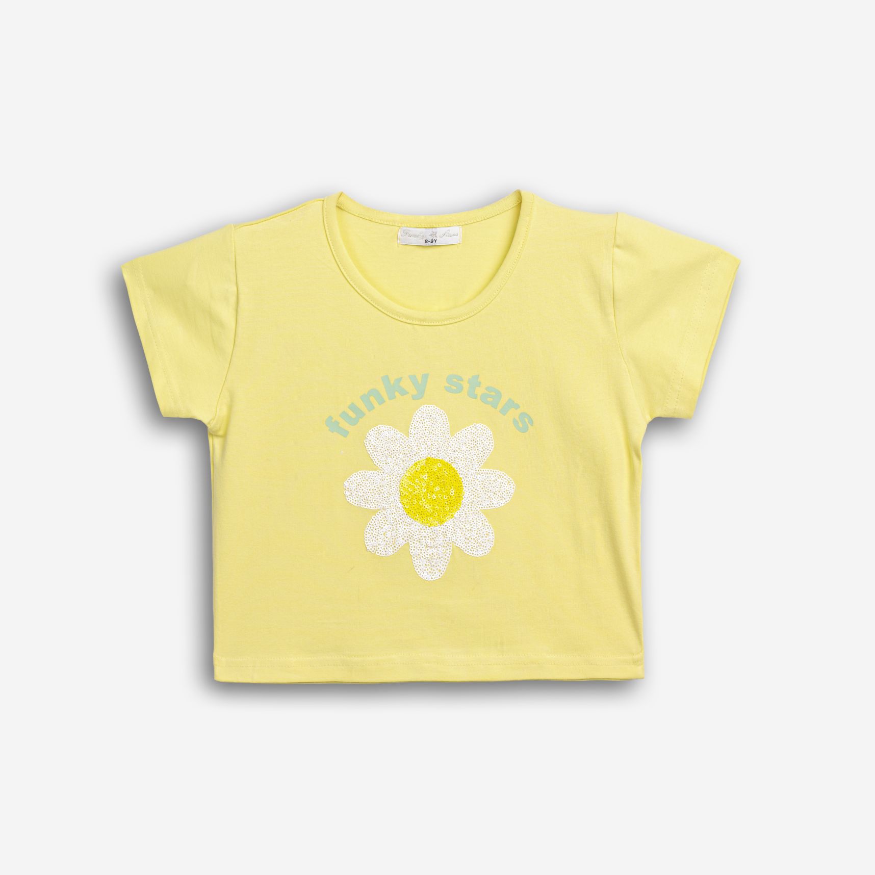 Μπλούζα κοντομάνικη κάλτσα λύκρα με τύπωμα (χαμομήλι) σε χρώμα sunny yellow για κορίτσι 6-16 ετών